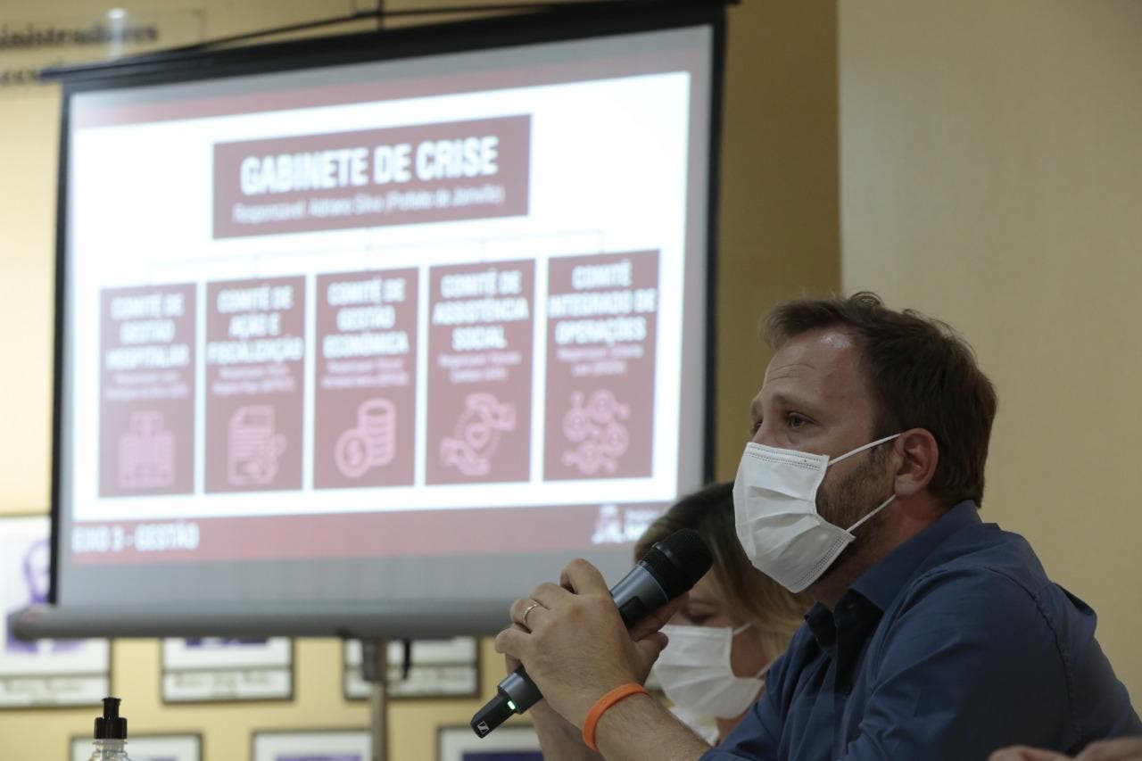 O maior entrave para a ativação de mais leitos de tratamento intensivo em Joinville está na dificuldade de contratação de médicos, segundo Adriano, devido à indisponibilidade de profissionais para atender a toda a demanda. O prefeito se queixou do tempo reduzido para o município comunicar a mudança no transporte coletivo determinada por novo decreto estadual.