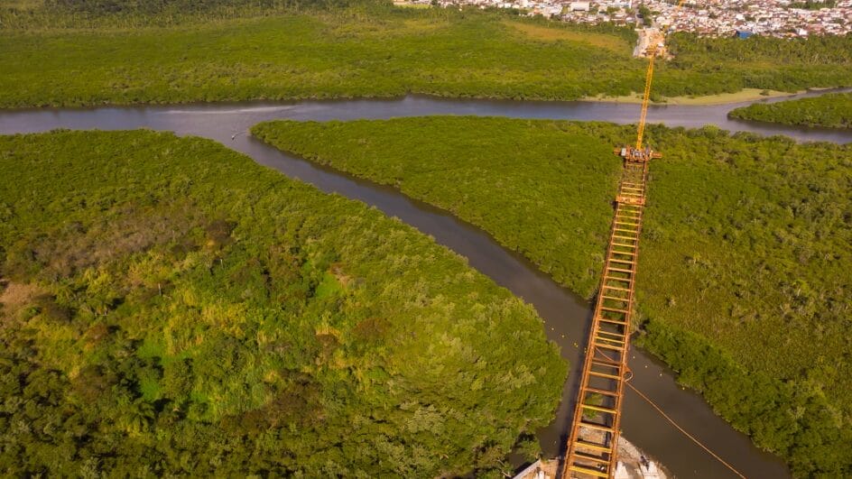 A ponte tem custo em torno de R$ 320 milhões, em obras e supervisão. O último balanço apontou execução de 16,3%, se forem levados em conta os pagamentos feitos até agora – R$ 50,8 milhões. O índice até pode ser maior, do ponto de vista de engenharia, mas não vai muito além. E o acompanhamento da execução é pelo desembolso de recursos. Com base nesse índice abaixo de 20%, há questionamentos na Câmara de Vereadores se o prazo de maio de 2026 será cumprido.