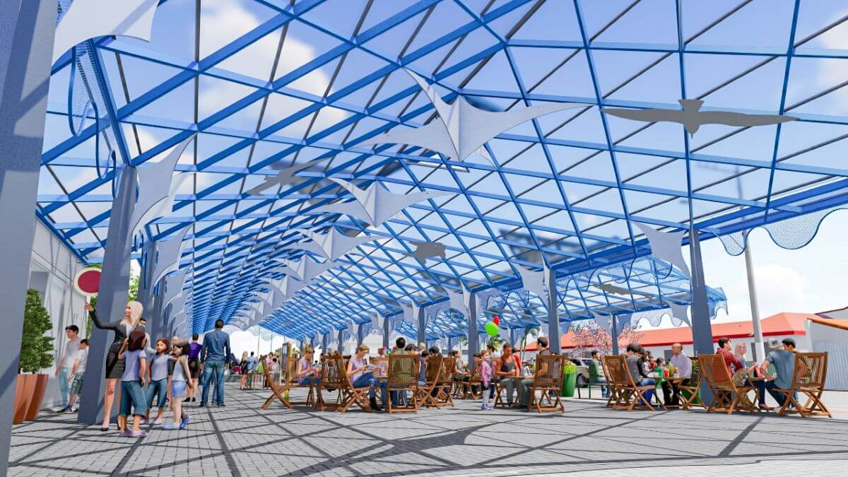 A estrutura será instalada em trecho da avenida Nereu Ramos e em parte da praça Monsenhor Sebastião Scarzello. Além de oferecer um atrativo turístico, a rua e praça cobertas vão permitir eventos, independentemente das condições climáticas. A área de 1,5 mil metros quadrados terá palco e espaços de gastronomia. O acesso será livre e a estrutura poderá ser usada para lazer, mesmo quando não houver realização de eventos.