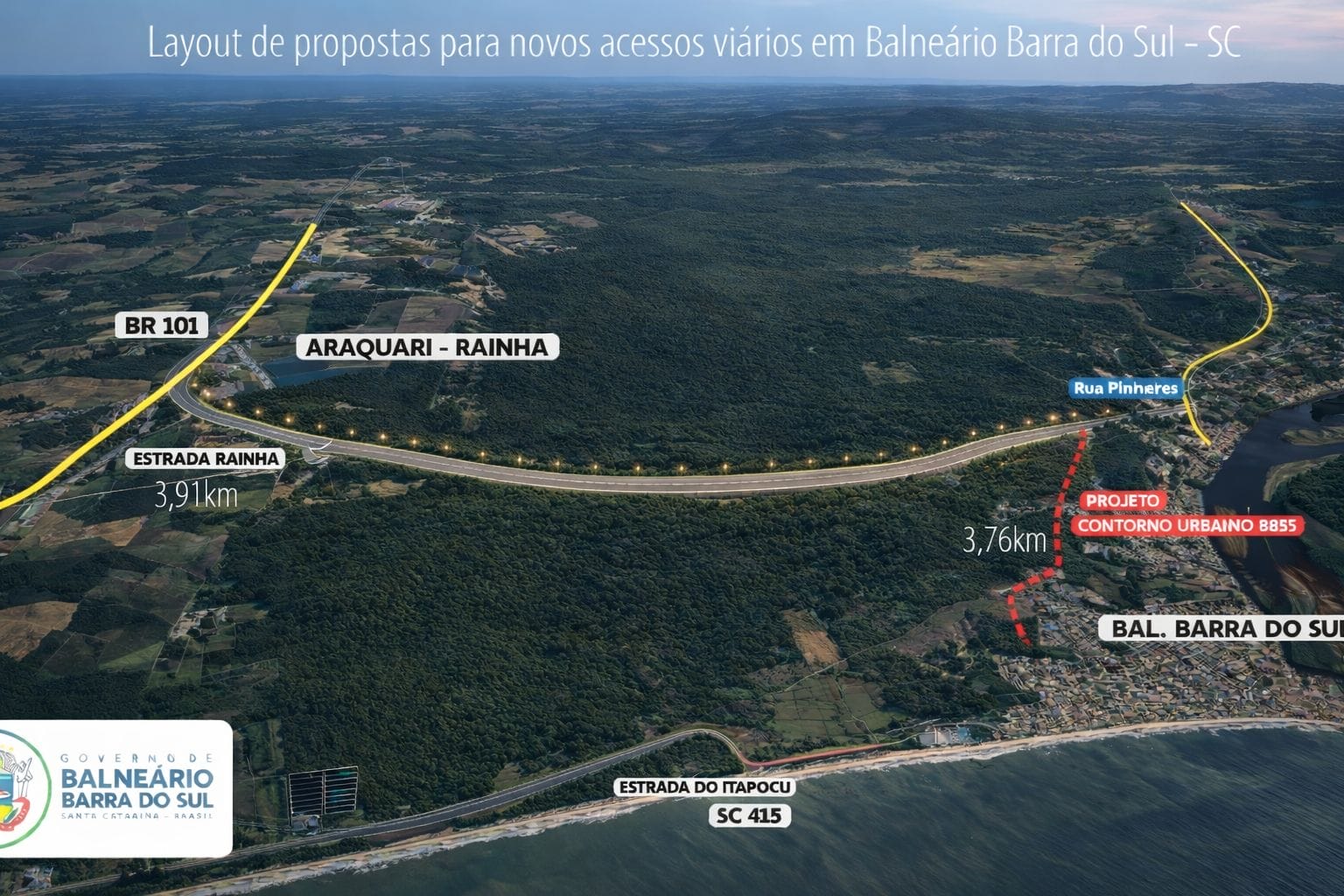 O prefeito de Balneário Barra do Sul, Ademar Henrique Borges, voltou a defender a implantação de nova estrada para acesso à cidade litorânea. O traçado proposto, com 9 km, aproveita via antiga, sem tráfego regular. A ligação fica entre a BR-101 e o bairro Pinheiros, com segmento no município vizinho de Araquari. Não há previsão de obras porque os estudos de viabilidade ainda estão em fase inicial. Também está em avaliação a implantação de contorno urbano (confira mapa abaixo).