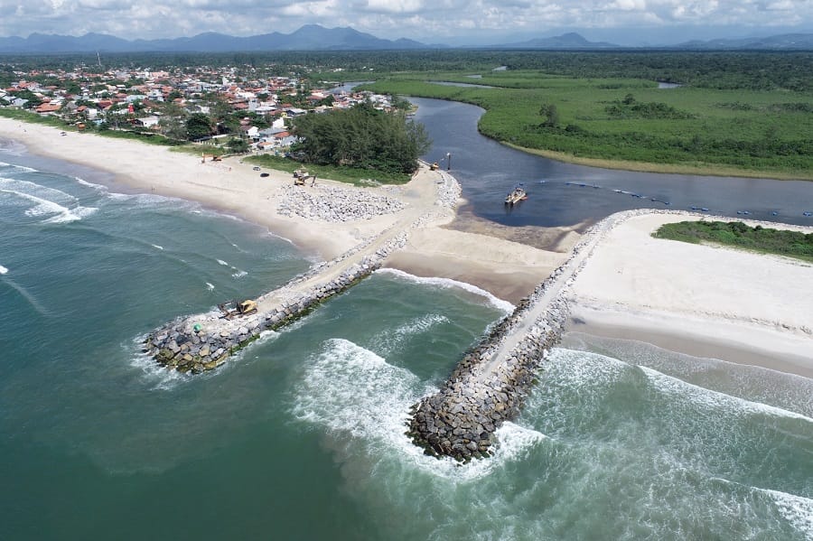 O novo acesso ao mar para embarcações em Itapoá será inaugurado no dia 30 de abril, dentro das comemorações do aniversário da cidade, no dia 26. A abertura a partir do rio Saí-mirim, com instalação de dois molhes, foi projetada para facilitar a navegação, principalmente de embarcações de pesca. “Obra fundamental para a navegação”, diz o prefeito Jefinho Garcia, citando ainda a maior vazão do rio para o mar com um dos benefícios do novo acesso. O incentivo ao turismo náutico também está na lista.