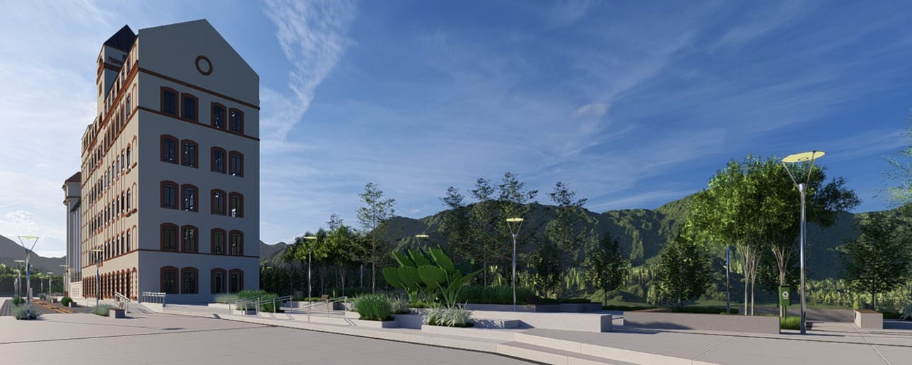 O paisagismo prevê áreas de integração e descanso, com o espaço multiuso, mirante, praça e lounge. Os trilhos usados pelos trens que movimentavam matéria-prima e a produção do moinho no passado serão preservados e integrados ao entorno da edificação. “Este investimento da Fiesc, por meio do Sesi, reconhece a relevante contribuição da indústria joinvilense ao desenvolvimento do Estado”, afirma o presidente da Fiesc.