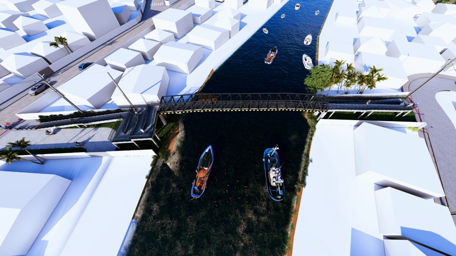 O projeto divulgado no início do ano prevê estrutura com 35 metros de extensão, com urbanização de 75 metros, no conjunto dos acessos. Naquele momento, o custo estava estimado em R$ 750 mil. A estrutura foi projetada com altura para permitir a passagem de embarcações. Segundo o projeto, elaborado pela Amunesc, a ponte vai proporcionar travessia “acessível” e “segura”. Neste momento, a proposta está passando por revisão e adequações. O plano do município é de licitar as obras no início do ano que vem.