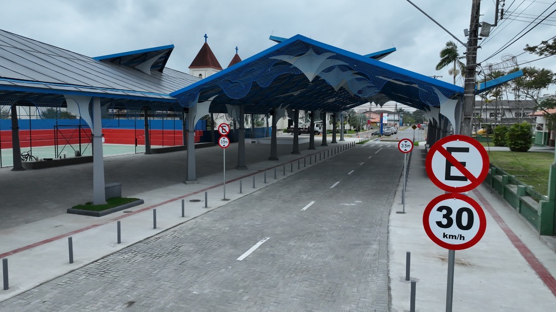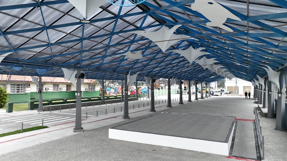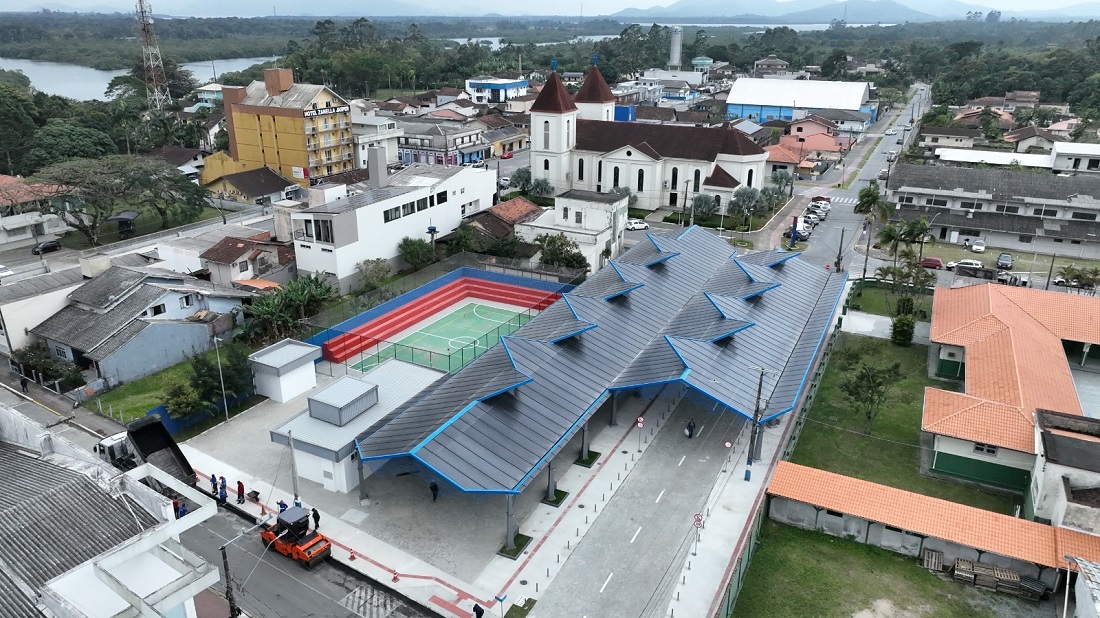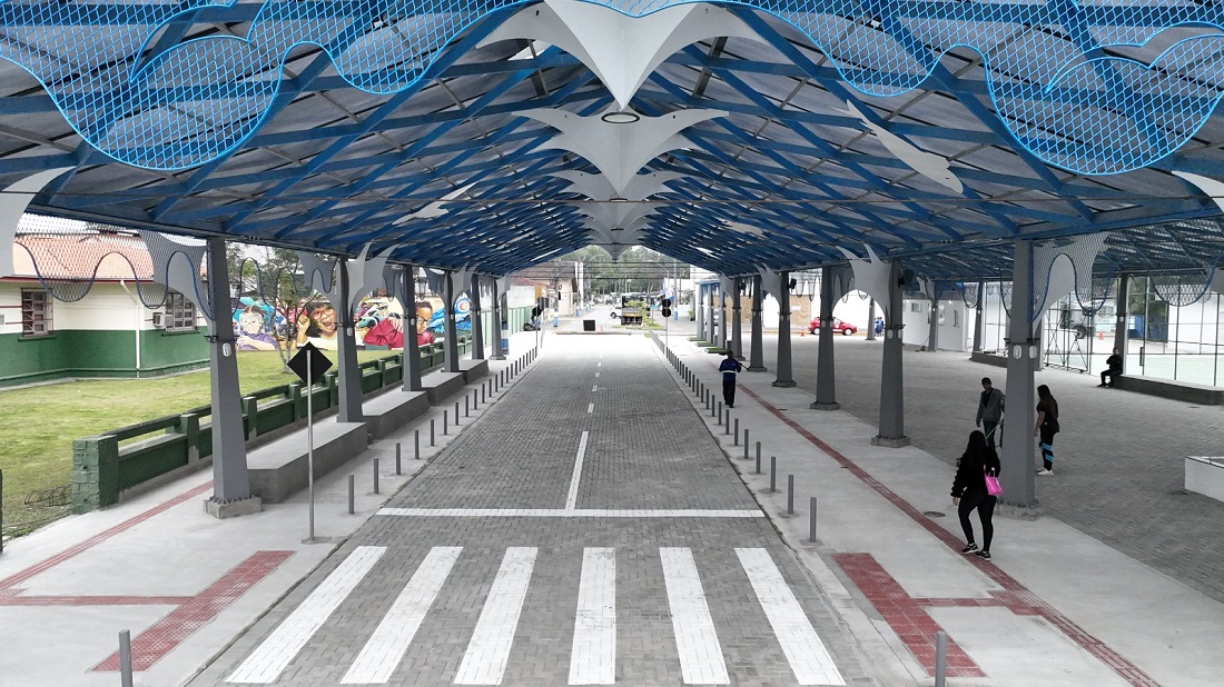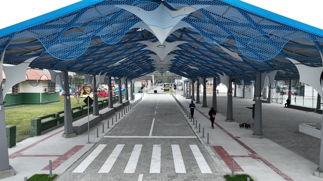 As formas da rua coberta são inspiradas em formas em aves e peixes da vizinha baía da Babitonga. A estrutura contará com energia elétrica, redes de água e esgoto, palco e espaço para food truck, banheiros e playground. O investimento foi de R$ 3,8 milhões, com recursos da prefeitura e emenda de R$ 1,6 milhão do então deputado Rodrigo Coelho. “Proporcionar ferramentas para o lazer é o primeiro passo para que as pessoas desfrutem da cidade com qualidade de vida”, afirma o prefeito Gordo Jasper.