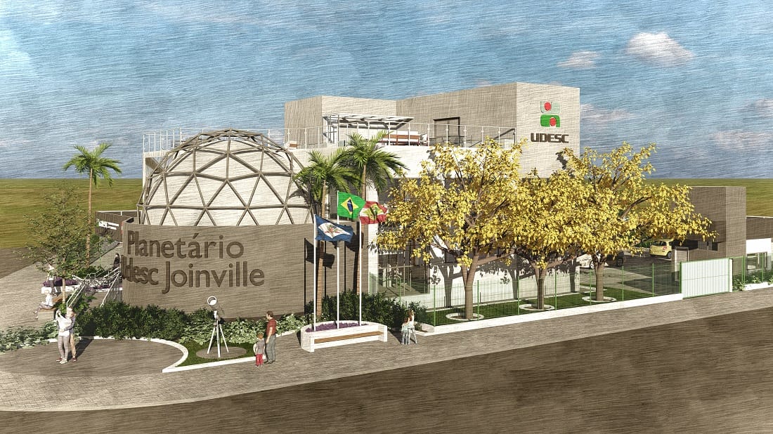 A concorrência para a construção de planetário, com conclusão das obras no primeiro semestre de 2027, deve ser lançada até novembro pela Udesc Joinville. O espaço no terreno de 3 mil metros quadrados vai contar com o Museu da Ciência e Tecnologia. A área, comprada pela universidade em 2022, fica em frente à rotatória de acesso ao campus, na Zona Industrial Norte. Os planos da Udesc para o planetário – e também para Ecoparte – foram apresentados na semana passada na prefeitura pela direção da universidade em Joinville.