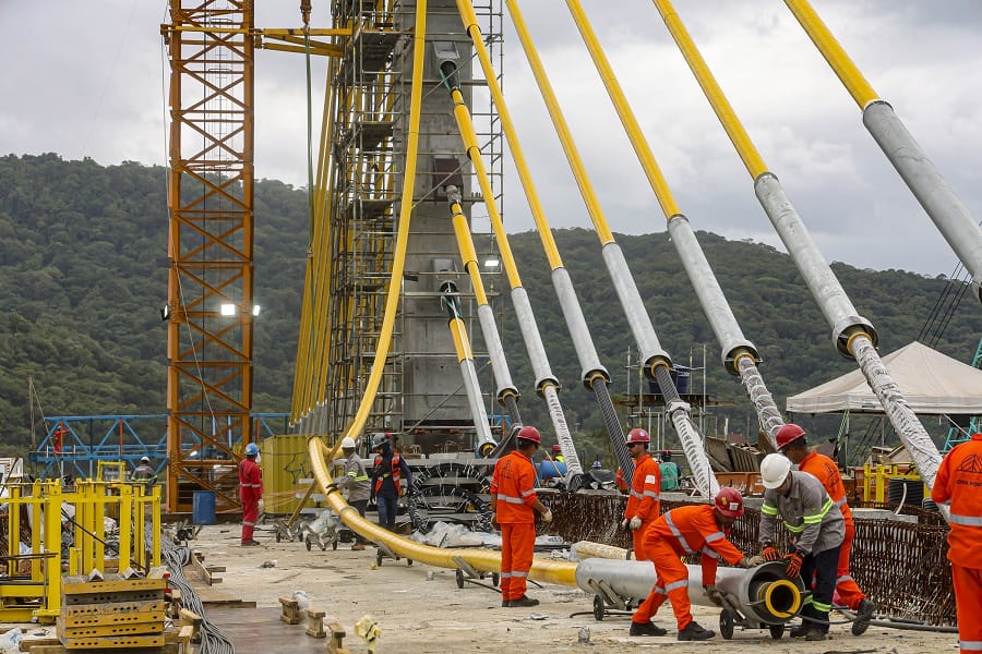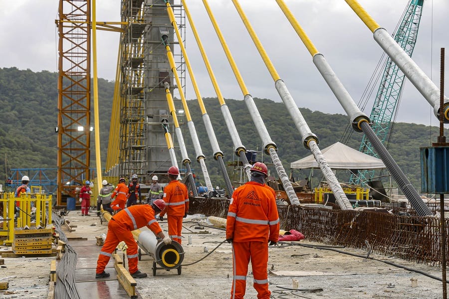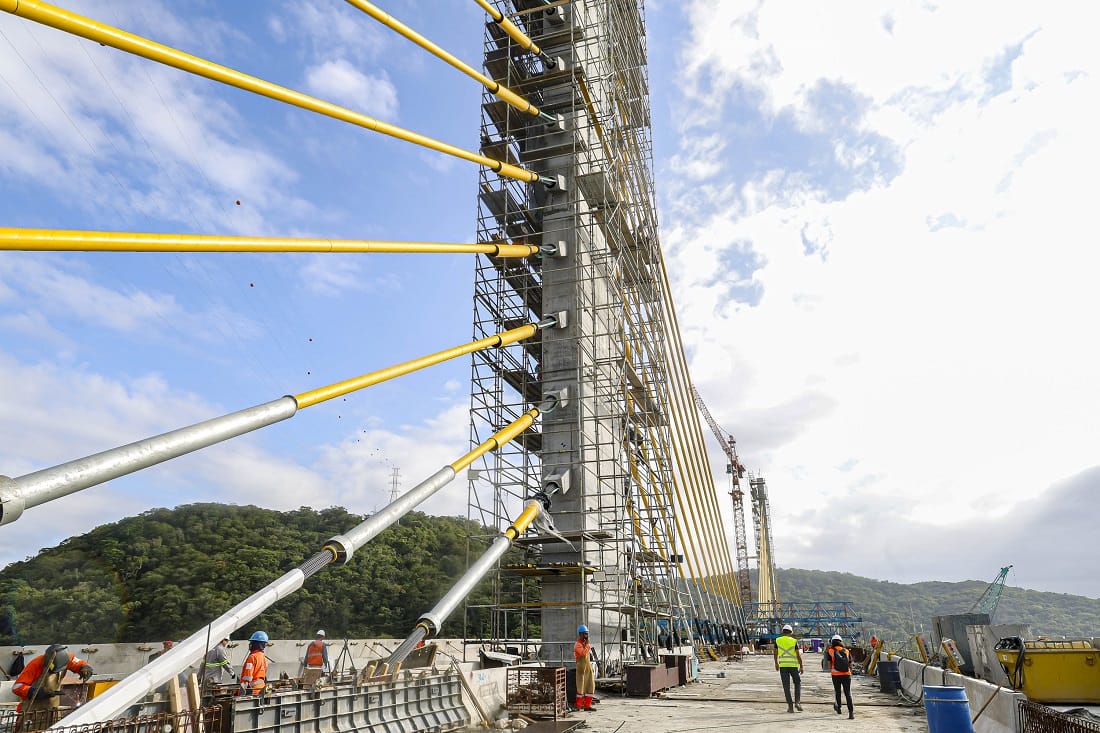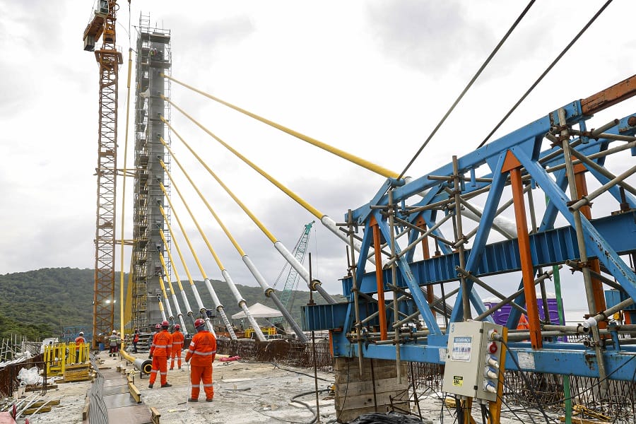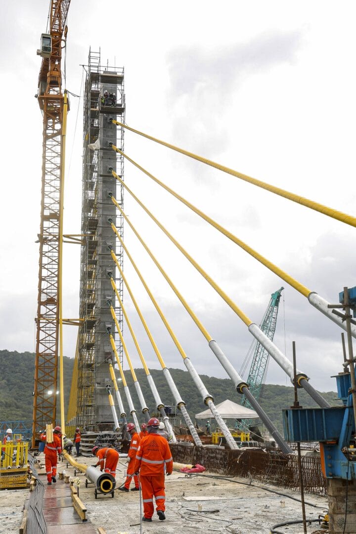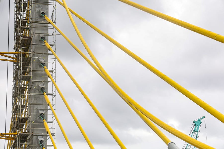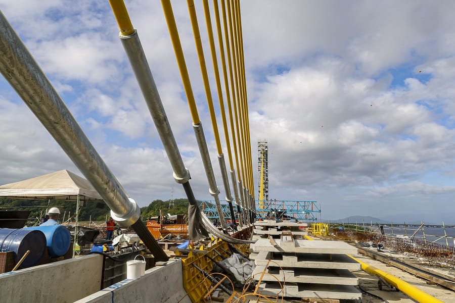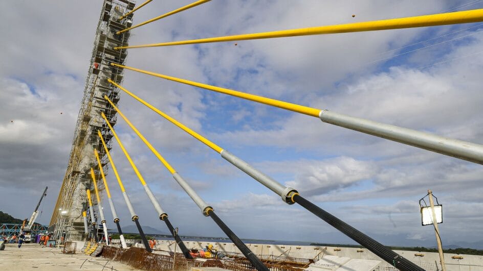 O cabo conta com três camadas de proteção de proteção contra a corrosão, com galvanização, cera e capa de polietileno de alta densidade. O modelo estaiado foi escolhido porque o vão da ponte é de maior extensão, com 160 metros. As 160 vigas previstas para a ponte já foram instaladas. Em janeiro, a execução da ponte alcançou 91%.