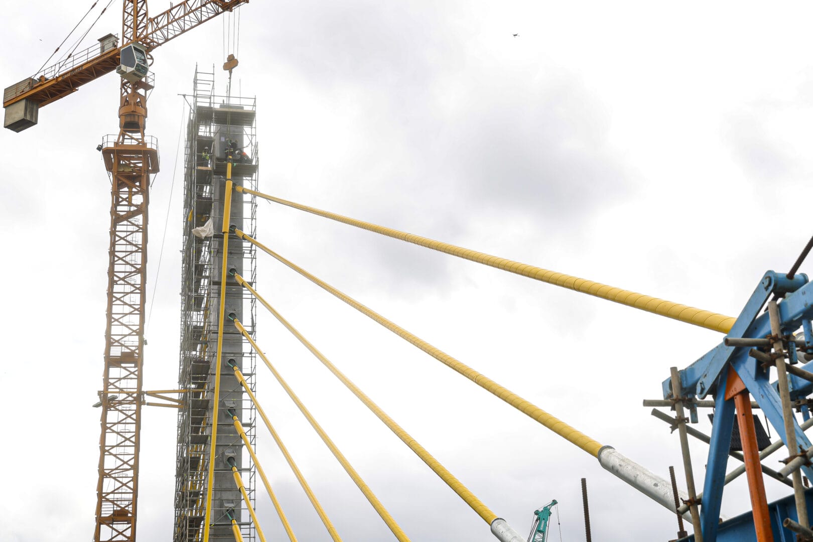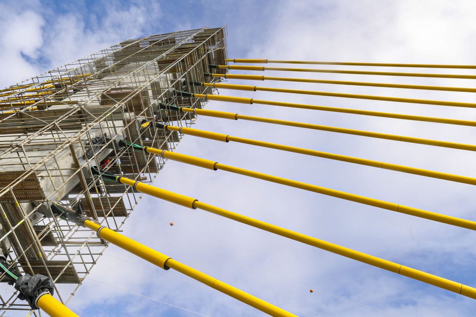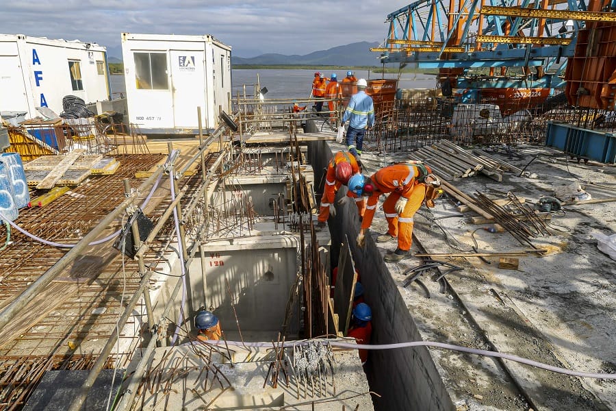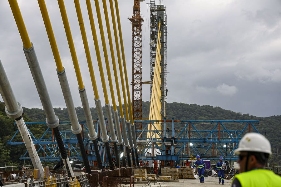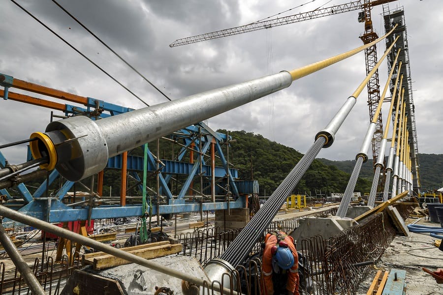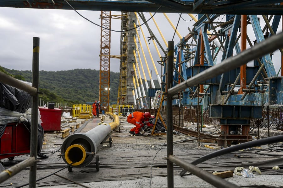 O cabo conta com três camadas de proteção de proteção contra a corrosão, com galvanização, cera e capa de polietileno de alta densidade. O modelo estaiado foi escolhido porque o vão da ponte é de maior extensão, com 160 metros. As 160 vigas previstas para a ponte já foram instaladas. Em janeiro, a execução da ponte alcançou 91%.