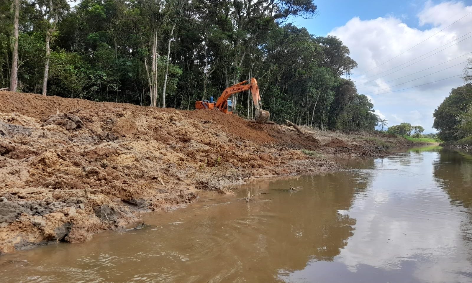 As obras no rio Águas Vermelhas, iniciadas no final de 2023, têm custo de R$ 32,6 milhões, bancados por meio de empréstimo junto ao BID. Além da retirada de sedimentos, as intervenções fizeram recuperação em 10 km das margens, com alargamento e ampliação dos taludes. Também houve reflorestamento no entorno, com plantio de 22,7 mil mudas de árvores. O principal objetivo do desassoreamento é a busca de redução da possibilidade de alagamentos.