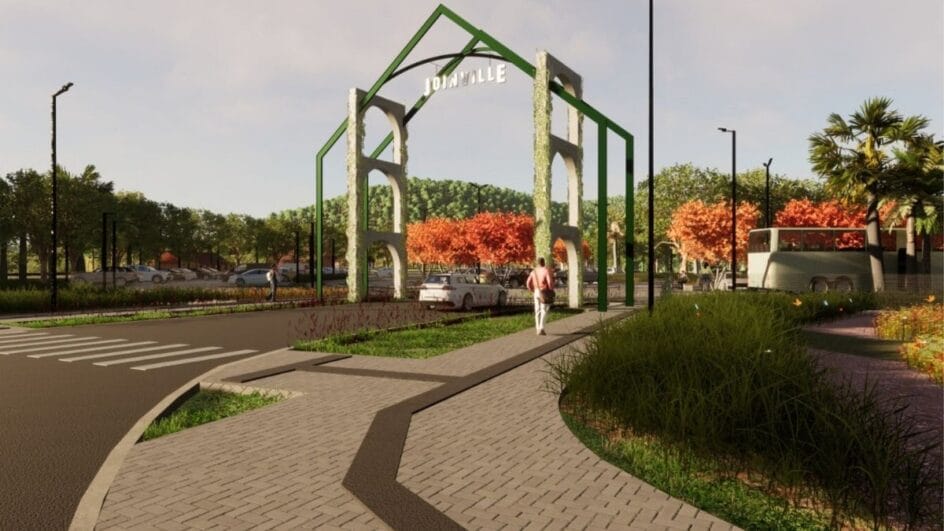 O pórtico da Vigorelli ficará junto ao acesso à localidade vizinha da baía da Babitonga, em investimento para reforçar o turismo. A instalação da estrutura na Estrada Rio da Prata ficará no início da via, em acesso pela SC-108, em Pirabeiraba.