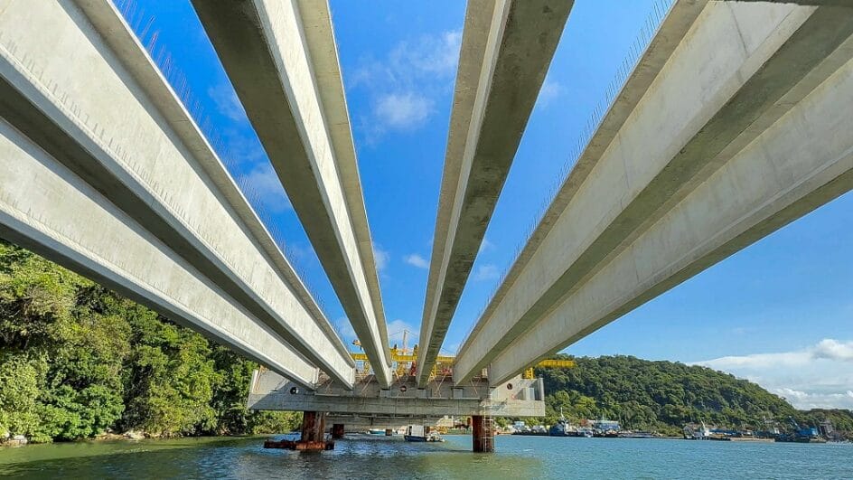 Construção de ponte de R$ 310 milhões em SC avança com estrutura de trilhos