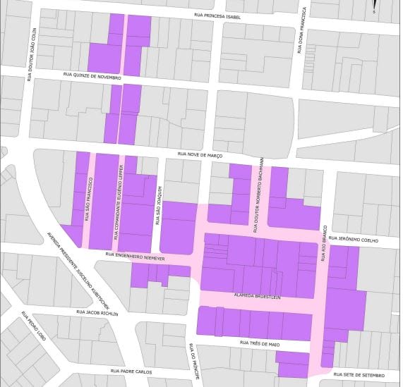 Os incentivos também podem ser estendidos aos empreendimentos já existentes no setor mapeado. O perímetro do setor com possibilidade de incentivos para comércio de alimentos contempla as travessas Bachmann, Sergipe e Mato Grosso, a alameda Brustlein (rua das Palmeiras) e mais ruas da área central, como São Francisco, Comandante Eugênio Lepper, São Joaquim, Rio Branco, entre outras (confira abaixo).