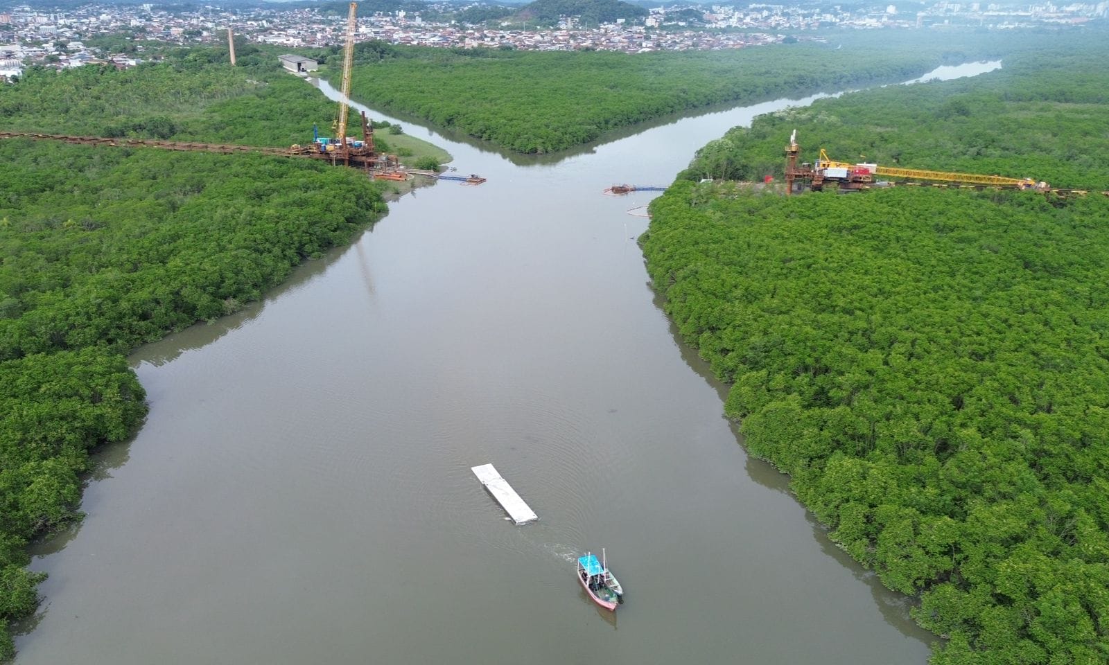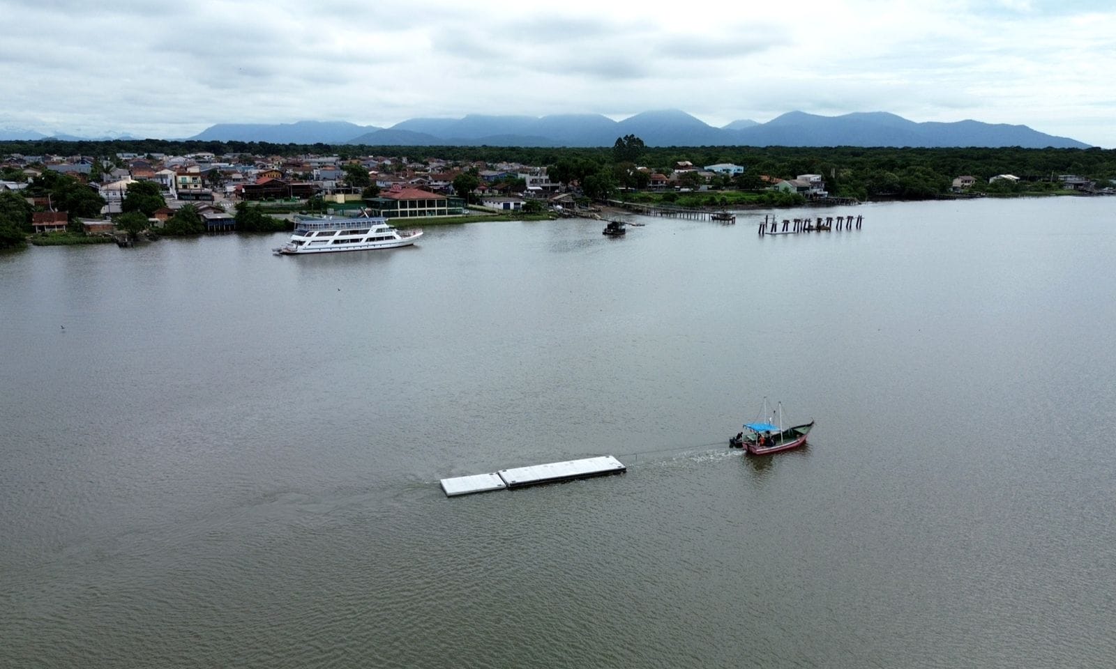 Os flutuantes do cais em construção no Espinheiros começaram a ser transportados nesta terça-feira, conforme informado pela prefeitura de Joinville. São cinco módulos de 25 toneladas cada que farão parte do cais flutuante. As peças estão sendo trazidas pelo rio Cachoeira por meio de rebocador, de ponto de quase 5 km de distância – os módulos foram fabricados em galpão próximo do rio.