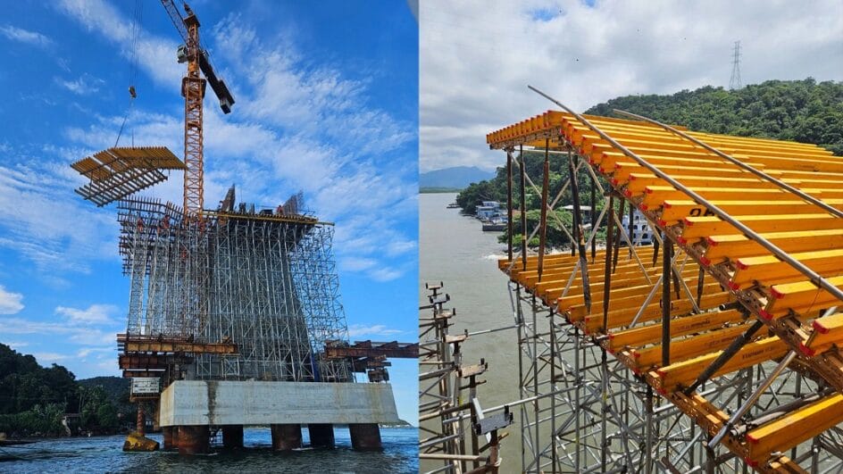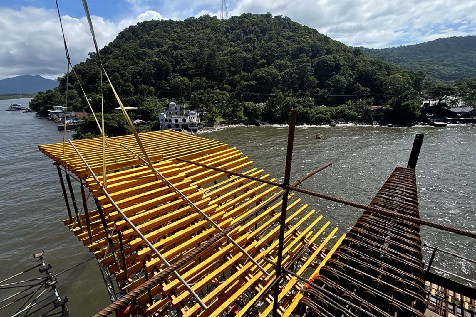 As obras da Ponte de Guaratuba entraram nesta semana na fase de execução da chamada aduela de partida, a estrutura de concreto que avança a partir de um pilar. A técnica permite a construção de vãos sem a necessidade de escoras. A ponte entre Guaratuba e Matinhos alcançou 44% do previsto no contrato. A previsão de conclusão da estrutura de 1.244 metros é abril de 2026. A contratação do governo do Paraná tem valor inicial de R$ 387 milhões.