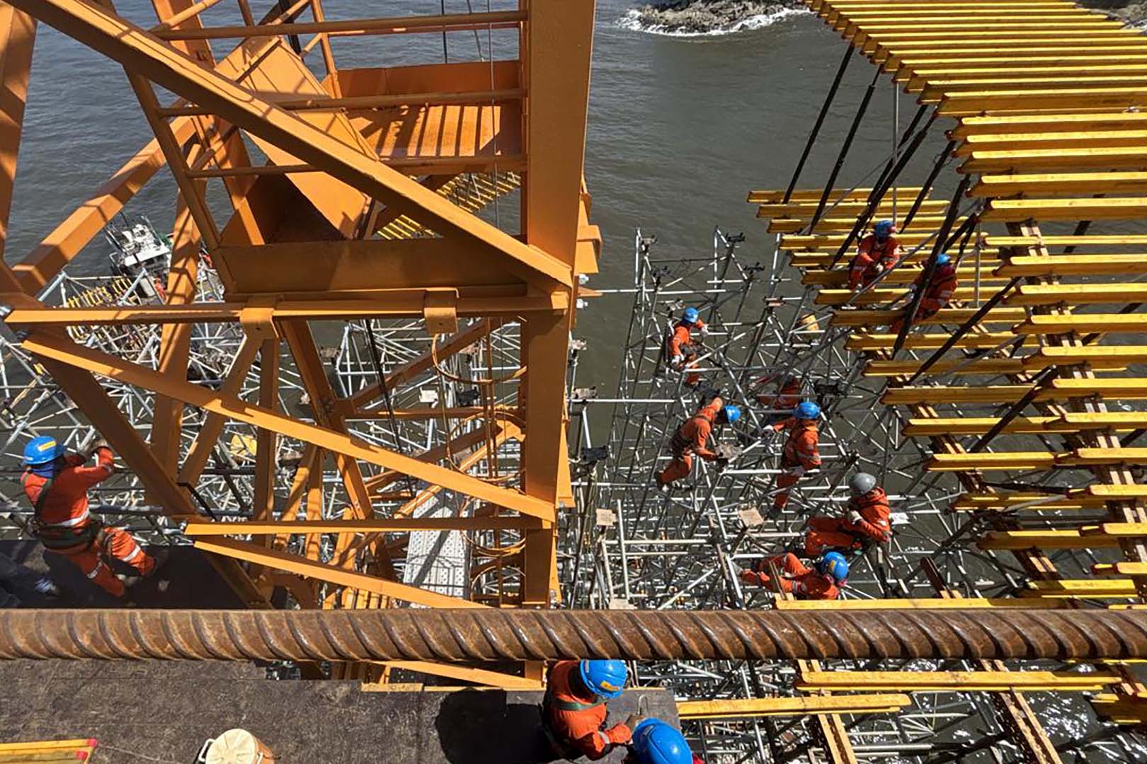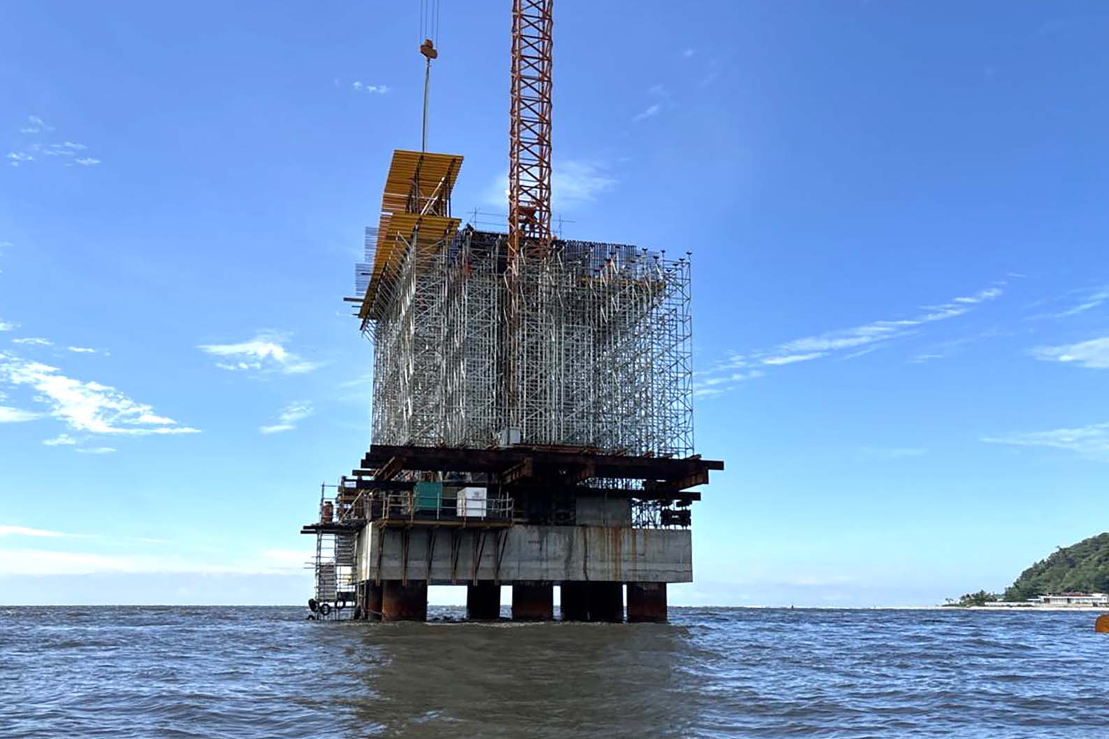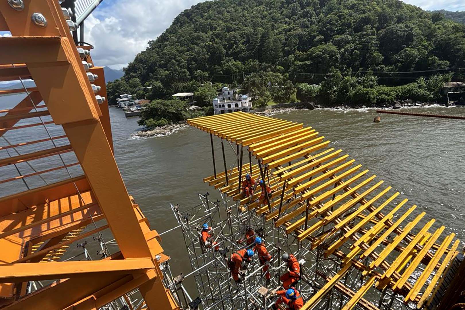 Também está em andamento a execução de estruturas temporárias para a sustentação de formas de concreto, o chamado cimbramento. Estão sendo executadas ainda estacas do segmento pré-moldado (a ponte tem também trecho pré-moldado), além da fabricação das vigas da base das pistas de tráfego. A requalificação dos acessos está em obras nos dois lados da ponte.