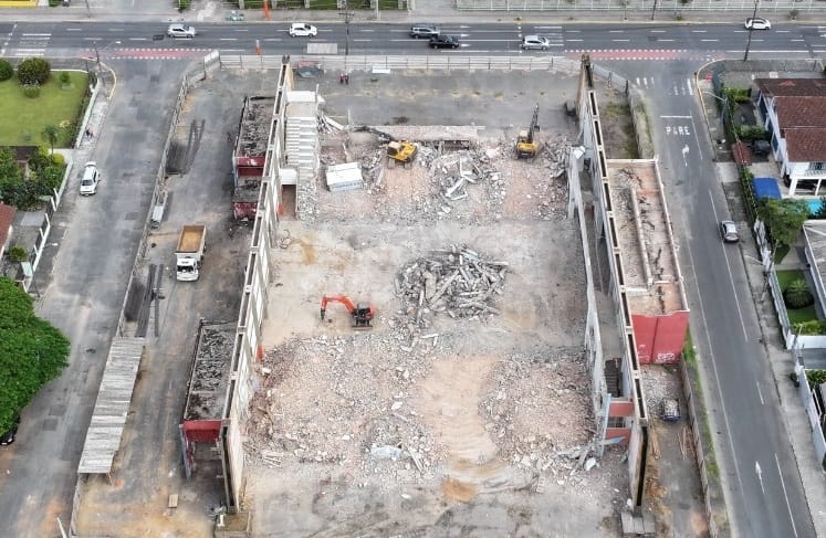 Com obras iniciadas há dois meses, o atual estágio da reforma do ginásio Ivan Rodrigues, em Joinville, já mostra que a maior parte da construção será reconstruída, com permanência apenas das paredes laterais. A intervenção começou pela cobertura e agora está em andamento a remoção das arquibancadas. As obras têm prazo contratual até abril de 2028, em investimento de R$ 14,6 milhões do governo do Estado.