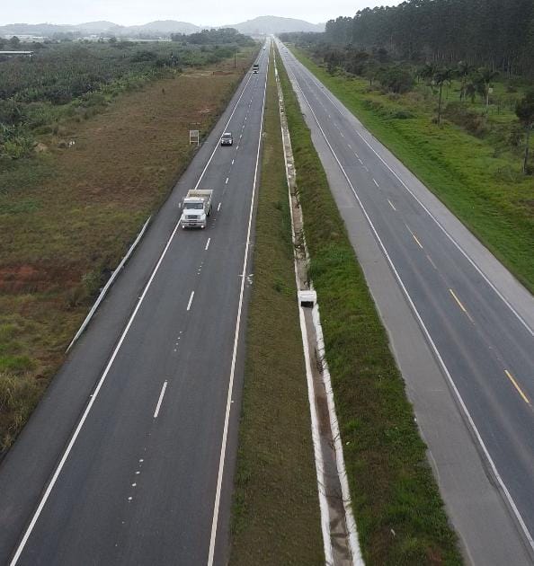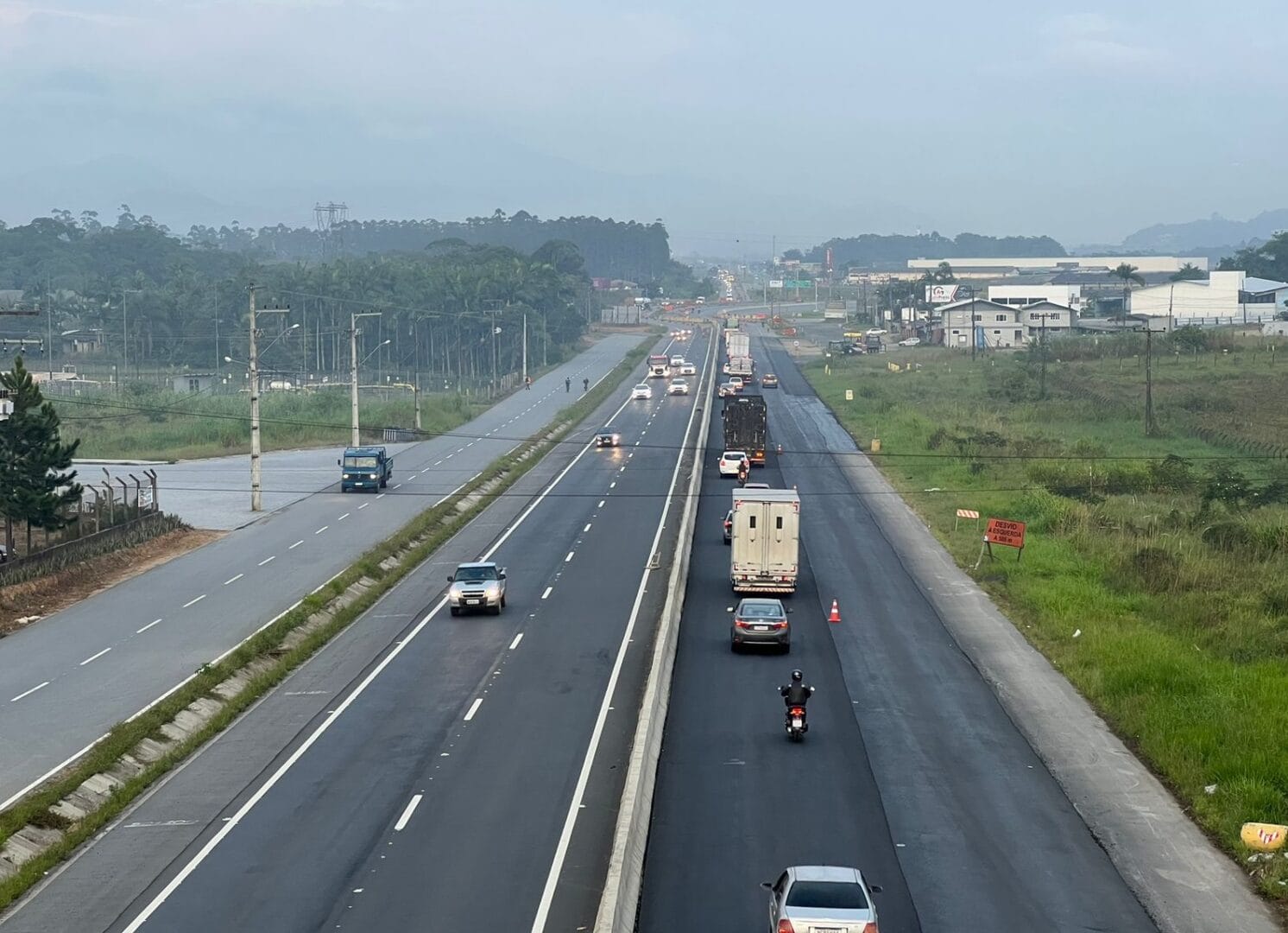 A BR-280 está com um dos lotes parados, com retomada ainda a ser licitada. Não há como estimar quando o segmento de 36 km entre São Francisco do Sul e Araquari ficará pronto, até porque trecho vai precisar de novo projeto, ainda a ser contratado. Os demais dois lotes da 280 estão em andamento, com conclusão prevista para 2026 e 2027. Há 6 km duplicados liberados ao trânsito. Na BR-470, a execução está em 84%, com 62 km duplicados já liberados. As obras devem ser concluídas no ano que vem.