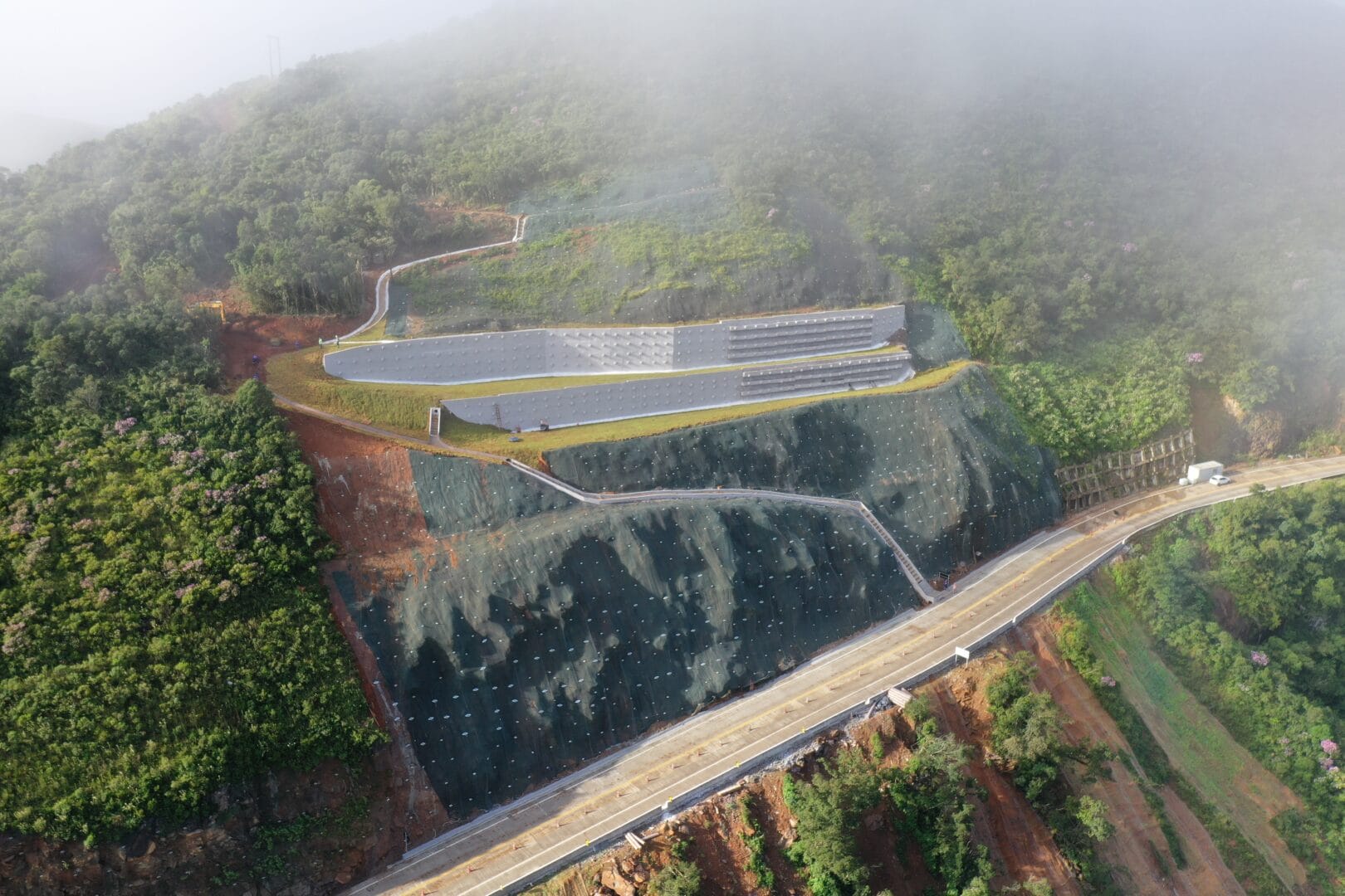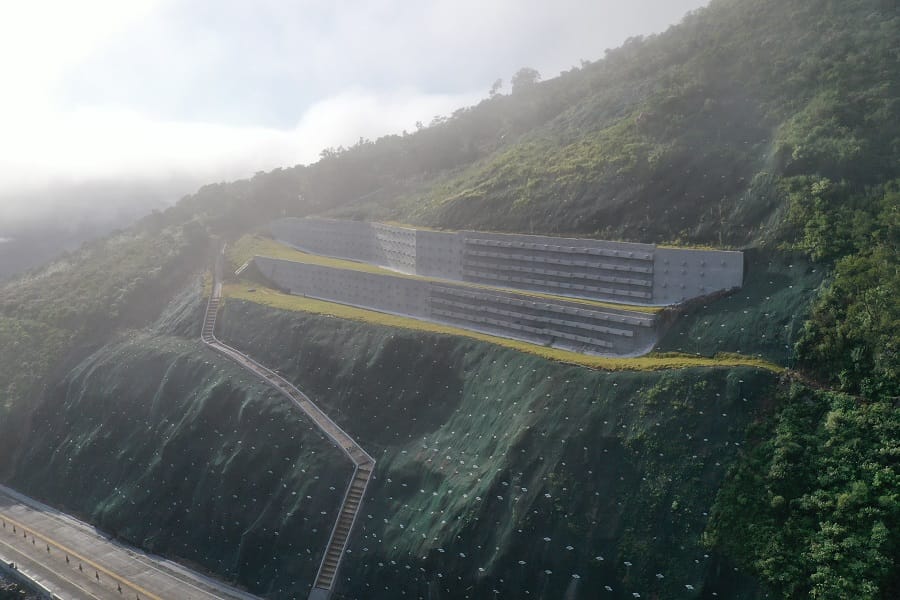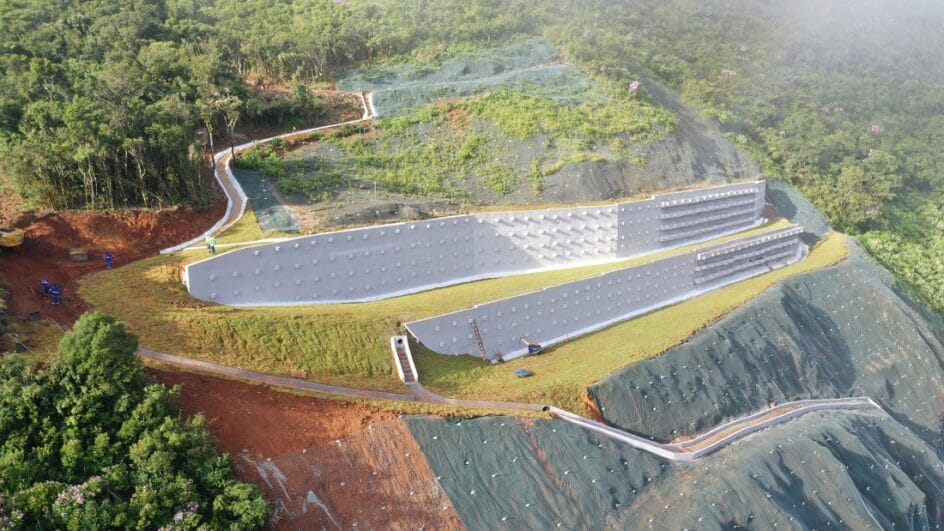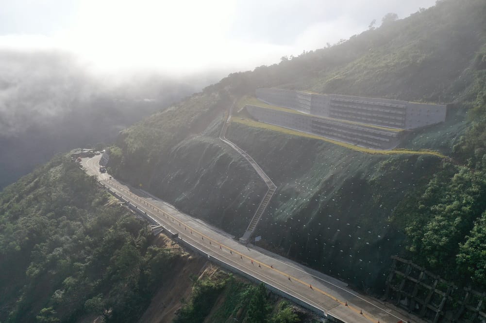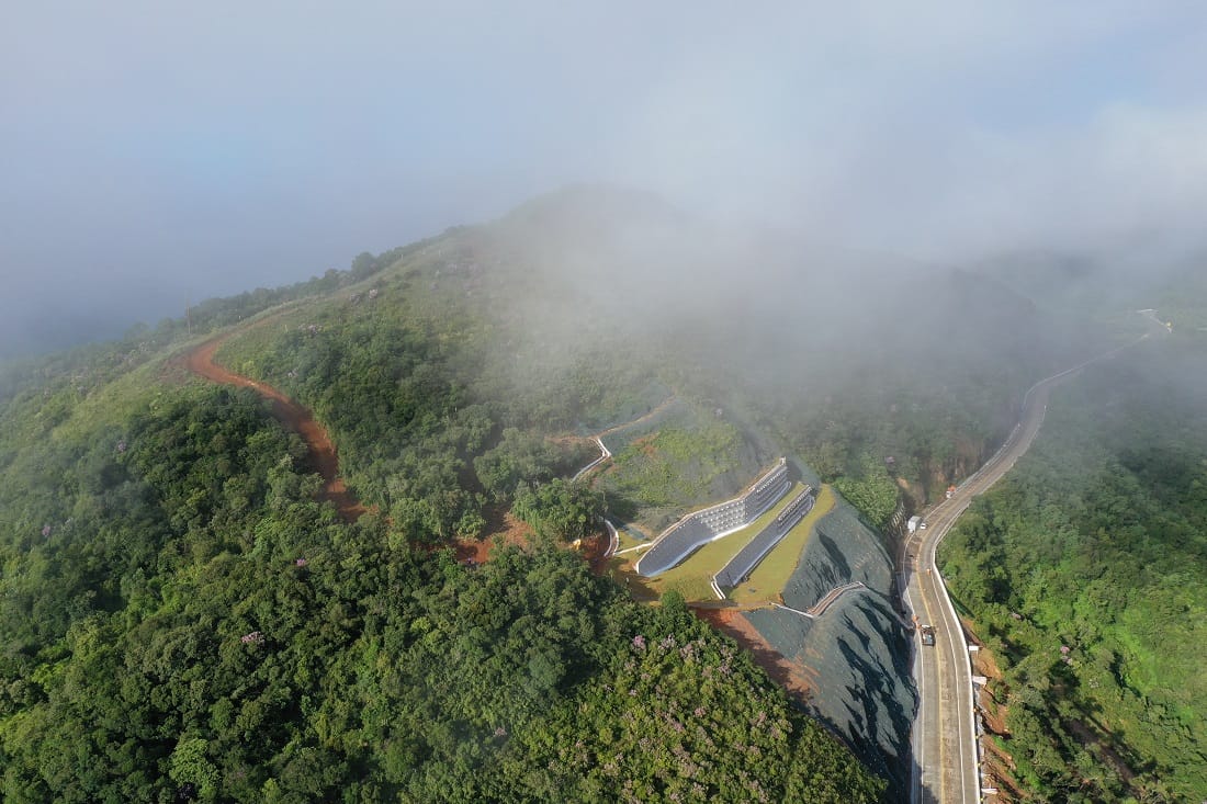 Houve paralisação dos trabalhos em 2024, após deslizamento de maciço. No início do ano passado, houve a retomada, com implantação de contenção com 50 metros de altura, em investimento de R$ 57 milhões. A técnica empregada foi de cortina atirantada, com muros de concreto com tirantes fazendo a contenção.