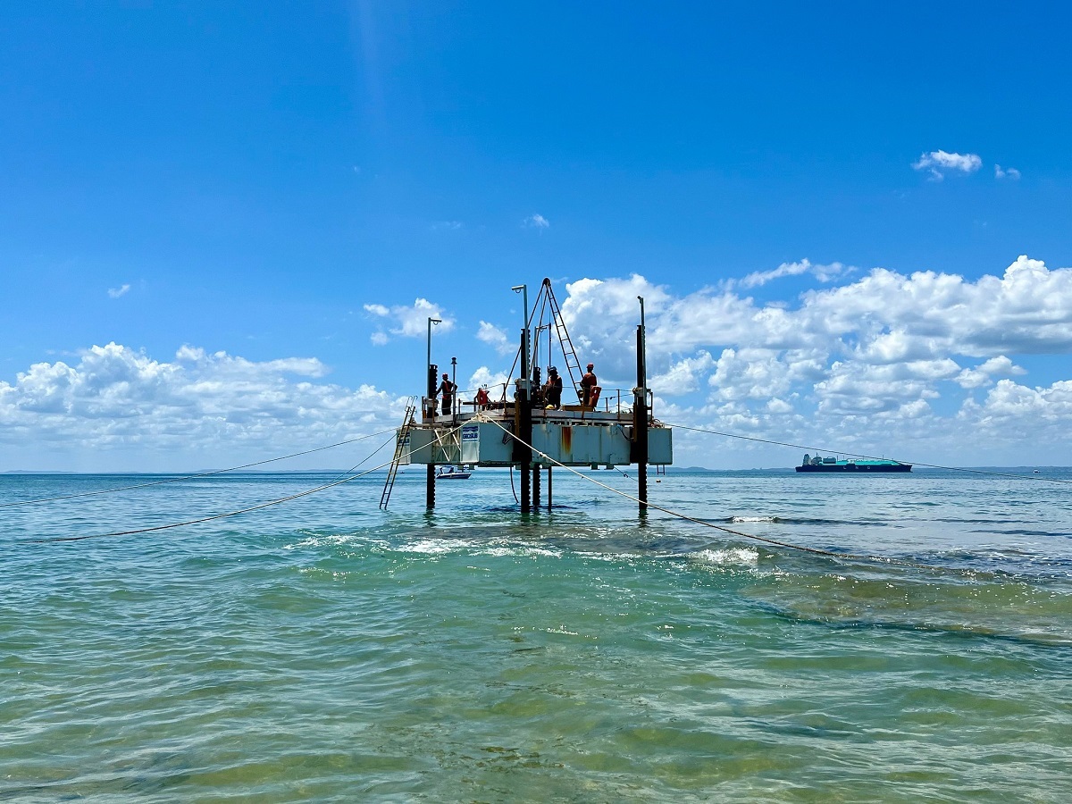 A construção na Bahia é uma parceria público-privada (PPP), com participação do governo estadual. Um consórcio formado por empresas da China venceu a licitação no final de 2019, com assinatura do contrato em 2020. A pandemia atrasou o andamento do projeto nos primeiros anos da década. No início de 2024, foram iniciadas as sondagens no fundo do mar, procedimento que deverá definir o modelo de construção. O canteiro de obras deve ser montado no segundo semestre.