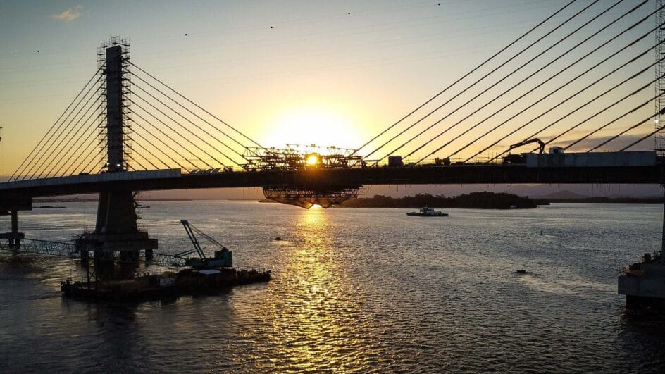Na quinta-feira, as duas frentes de trabalho se uniram no vão central. A concretagem uniu os segmentos. O nome técnico do procedimento foi “concretagem da aduela de fechamento”, o que deixou a ponte contínua, formando uma única estrutura. Conforme divulgado, foram concretados aproximadamente 2 metros, com aplicação de 44 metros cúbicos de concreto. A etapa é considerada delicada porque exige precisão “milimétrica” e controle estrutural “rigoroso”.