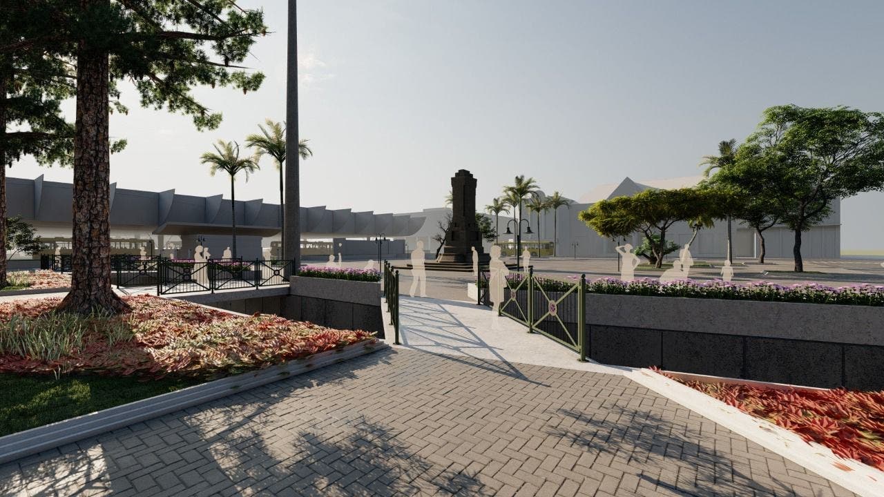 > Após queda de calçada, vistoria aponta novas falhas na Praça da Bandeira, em Joinville