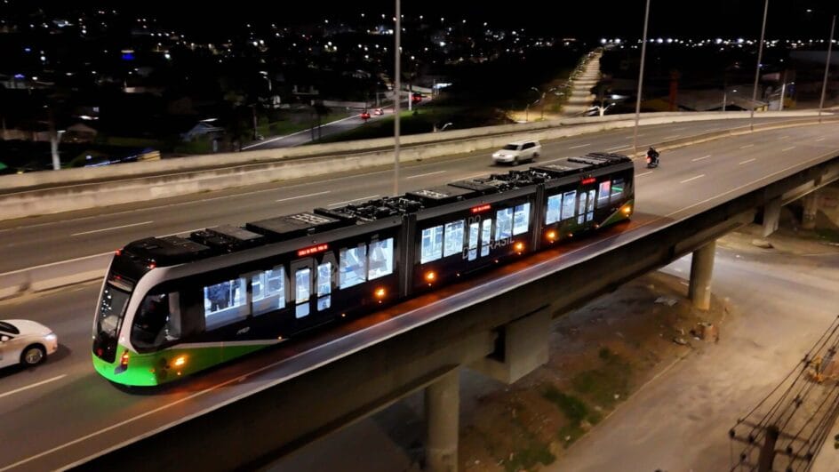 O bonde elétrico, com pneus, se desloca por meio de “trilho virtual”, delimitado por marcadores magnéticos, com imãs, e sensores no asfalto. O governo do Paraná descreveu o bonde como combinação entre veículo leve sobre trilhos (VLT) e BRT, de uso pelos ônibus.