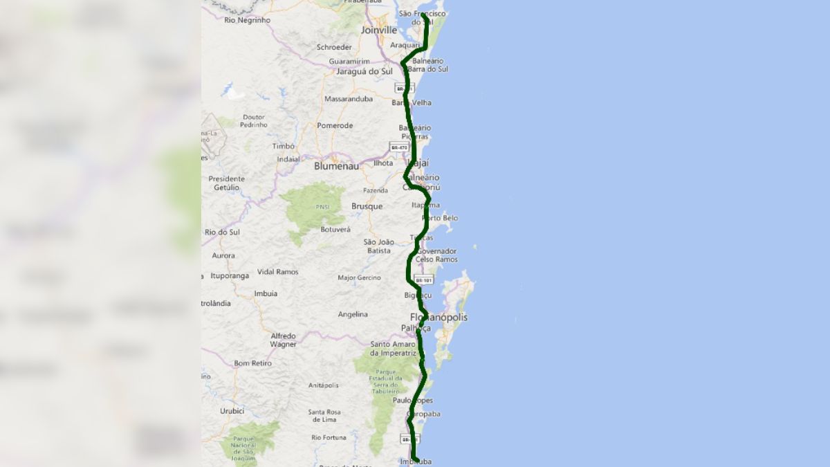 A ferrovia proposta conecta os complexos portuários de São Francisco do Sul, Itajaí/Navegantes e Imbituba. O segmento percorrido, paralelo à BR-101, também pode ser utilizado para transporte de passageiros, devido à grande movimentação no entorno. Um segmento dessa ferrovia está em estudos, em fase final dos projetos executivos, contratados pelo governo do Estado: é o segmento de 62 km entre Araquari (que conta com ferrovia até São Francisco do Sul) e Navegantes.