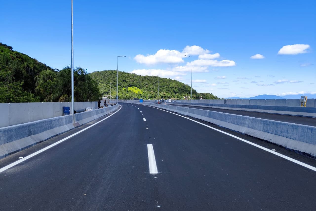 Os serviços de limpeza da pista, organização do canteiro de obras e ajustes finais estão em andamento. O meio-fio, implantação de juntas de dilatação e conclusão do asfaltamento também estão em execução. No acesso por Matinhos, a rampa de ligação com a ferrovia está sendo concluída. Em Guaratuba, as obras avançam na terraplanagem e finalização de acessos.