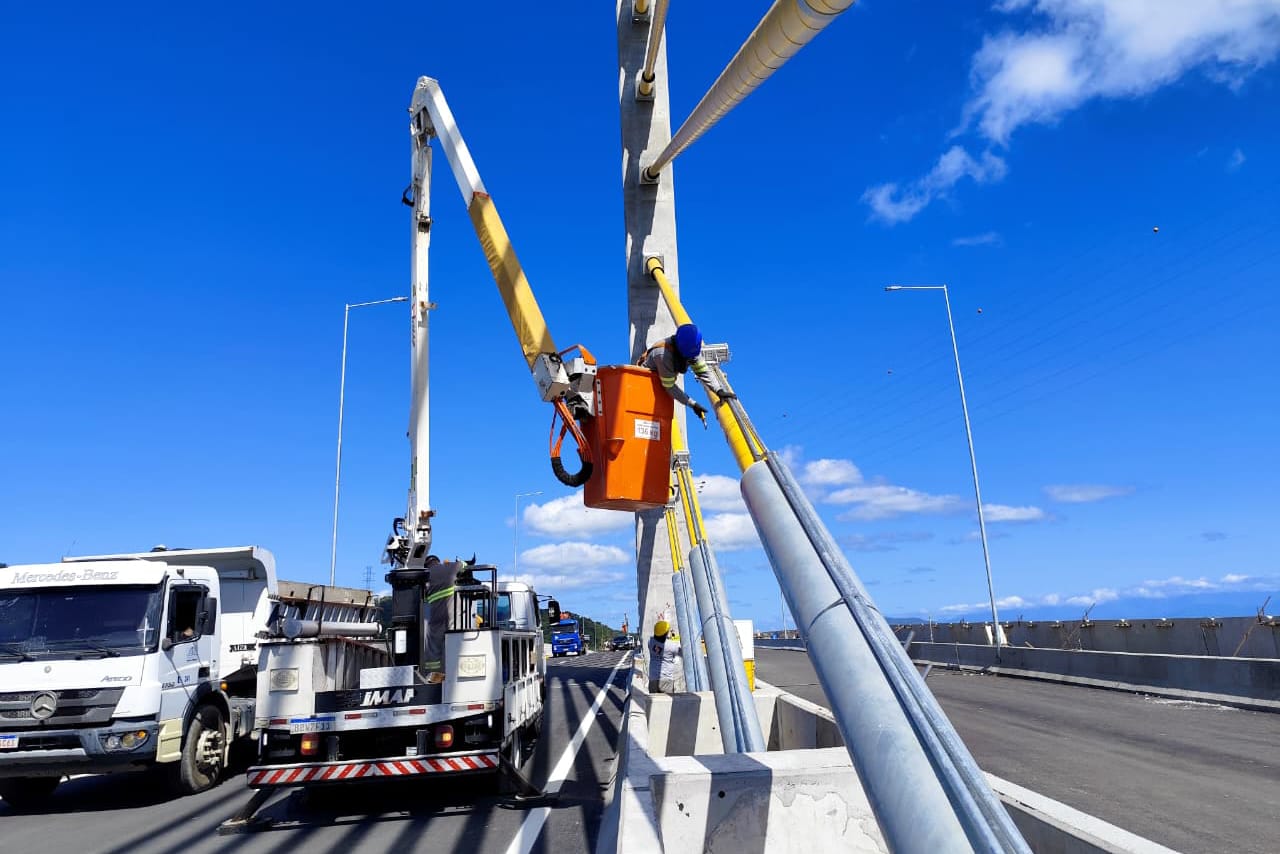 A ponte conta com 1.244 metros de extensão, com quatro faixas de tráfego, além de ciclovia e áreas para pedestres. Os acessos passaram por requalificação e ampliação dos dois lados, em Guaratuba e Matinhos. Nesta reta final dos trabalhos, está a instalação do sistema de iluminação nos mastros. A sinalização viária está na fase de pintura da pista.