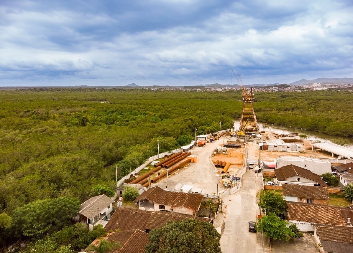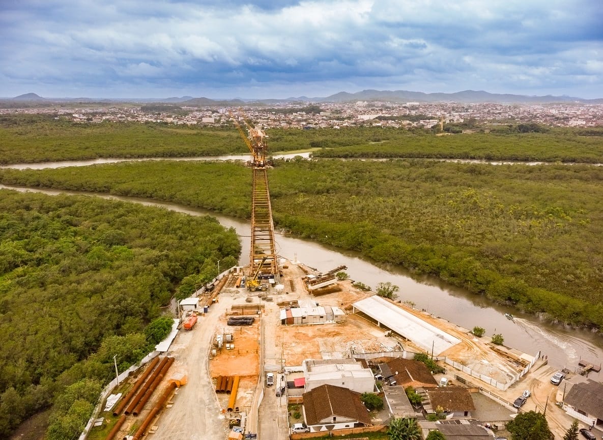 O espaçamento dos vãos e a dimensão das estruturas são a explicação para a “diferença” no número de estacas entre as duas pontes em obras em Joinville. A ponte da rua Anêmonas, com 182 metros de extensão, contará com 262 estacas. Já a Ponte Joinville, com 980 metros (cinco vezes a mais em relação à Anêmonas), terá 240 estacas. Ou seja, a ponte de maior porte terá número menor de estacas. Há explicação.