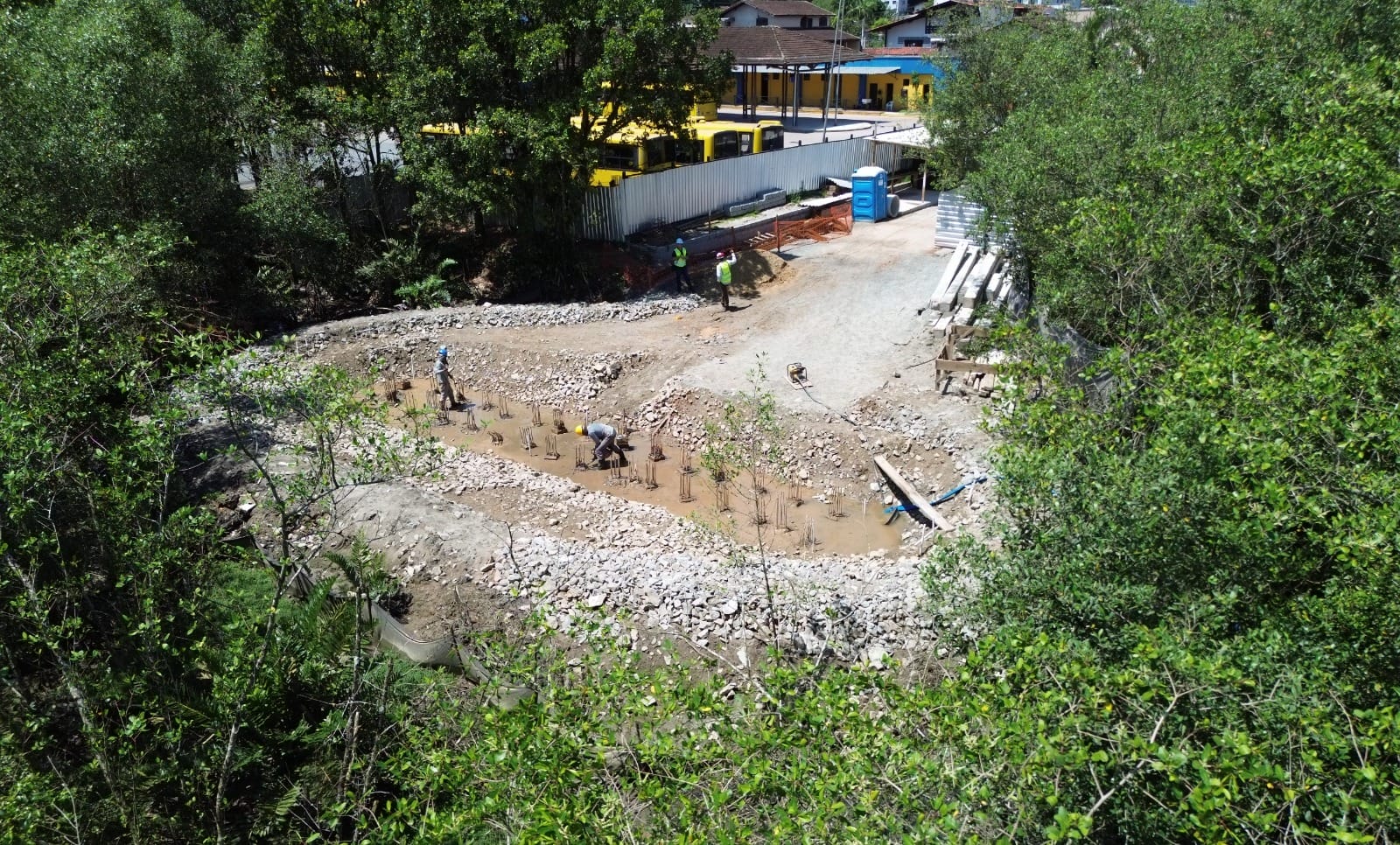 A prefeitura de Joinville informou nesta quinta-feira ter instalado 40 estacas na construção da ponte da Anêmonas. Foram 20 de cada lado (Guanabara e Fátima). Também está em andamento a produção de vigas de concreto, em canteiros de obras instalado ao lado da Arena Joinville.