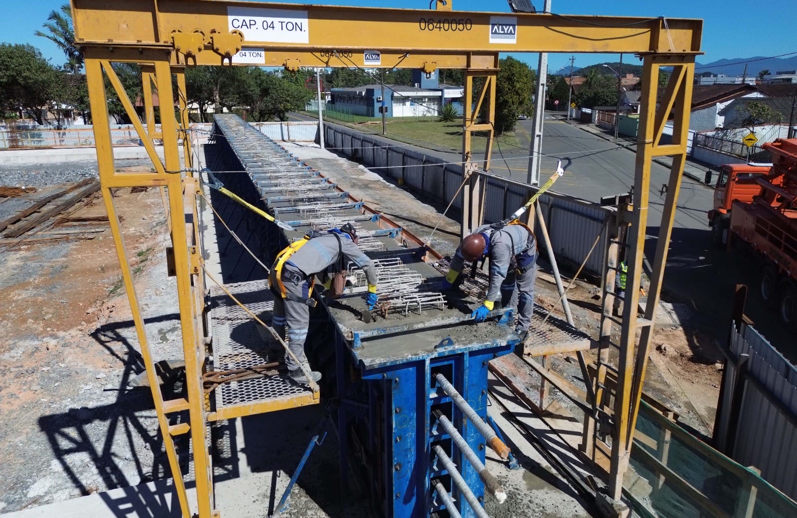 Uma das etapas em andamento nas obras é a fabricação de vigas (foto: Prefeitura de Joinville, Divulgação)