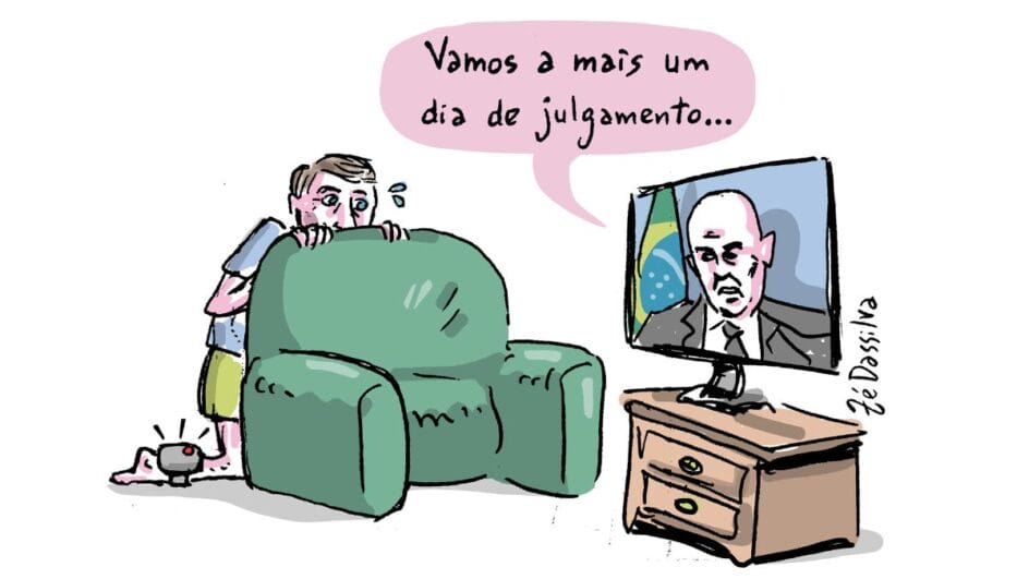 A charge de Zé Dassilva deste fim de semana repercute a continuação do julgamento do ex-presidente Jair Bolsonaro no STF.