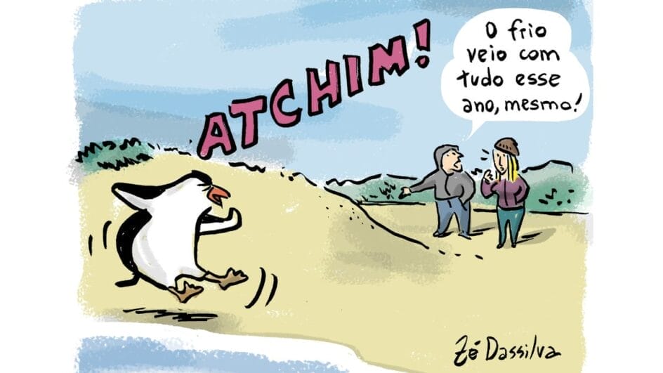 1A charge de Zé Dassilva repercute a chegada da frente fria, que trouxe neve a SC.