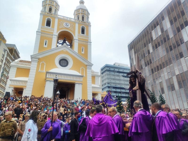 Depois de dois anos suspensa por conta da pandemia do coronavírus, a Procissão do Senhor dos Passos em Florianópolis reuniu cerca de 20 mil fiéis na região central da cidade neste domingo (3). As celebrações ocorreram durante o fim de semana, com missa e a Procissão do Carregador neste sábado (2). Veja, em fotos, como foi o ato religioso nesta tarde.
