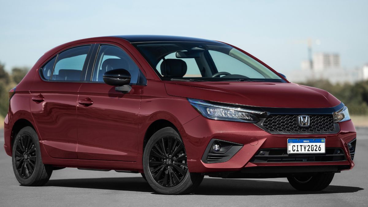 Honda City Touring Sport: Uma versão esportivada do hatch topo de linha traz itens exclusivos, como teto preto, rodas e capas de retrovisores na mesma cor, grade em black piano, faróis esportivos, ponteira de escape e pedaleiras esportivas. A cor vermelha Supernova será exclusiva dessa versão. Motor é o mesmo 1.5 de 126 cv do restante da linha e deverá custar acima de R$ 152 mil.