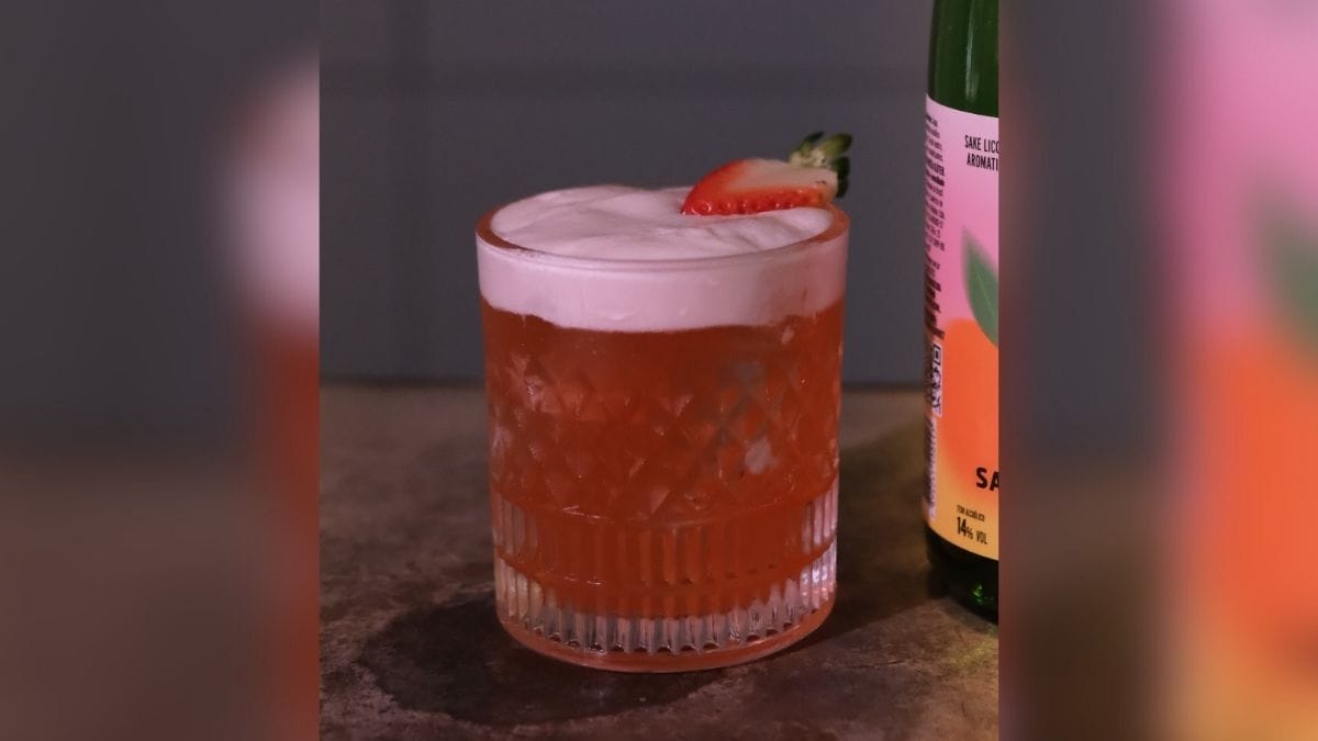 Macere os morangos com o xarope de açúcar em uma coqueteleira. Adicione gelo, o Sake, o suco de limão taiti e a clara de ovo. Agite bem e sirva coado em copo baixo com gelo. Finalize com uma fatia de morango.