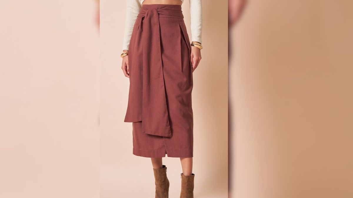 Também conhecida como saia transpassada, a saia envelope é um modelo que se adapta ao seu corpo e modela a cintura.