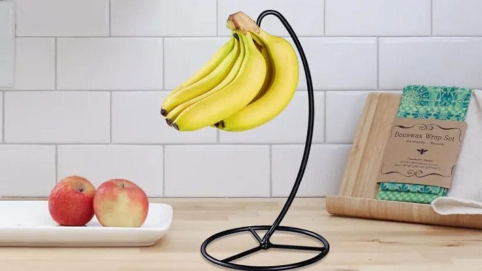 Aqui é preciso diferenciar, bananas maduras podem ir para a geladeira sem problemas. Já as bananas verdes precisam ficar fora, pois no frio não vão amadurecer tão facilmente. Um gancho na cozinha para bananas é o jeito mais indicado para armazenar essas frutas.