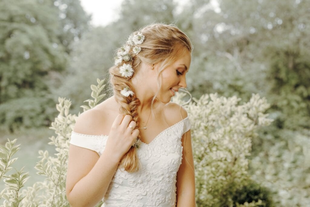 A trança desconstruída é a escolha ideal para noivas que desejam um visual leve, romântico e com um toque boho. Com mechas soltas suavemente posicionadas ao redor do rosto, ela cria um efeito delicado e etéreo, que combina perfeitamente com cerimônias ao ar livre ou produções mais despojadas.