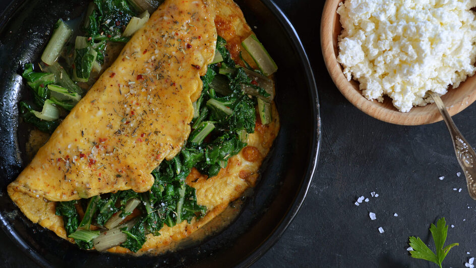 Omelete de espinafre com queijo cottage