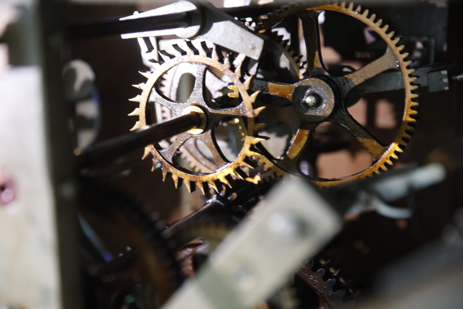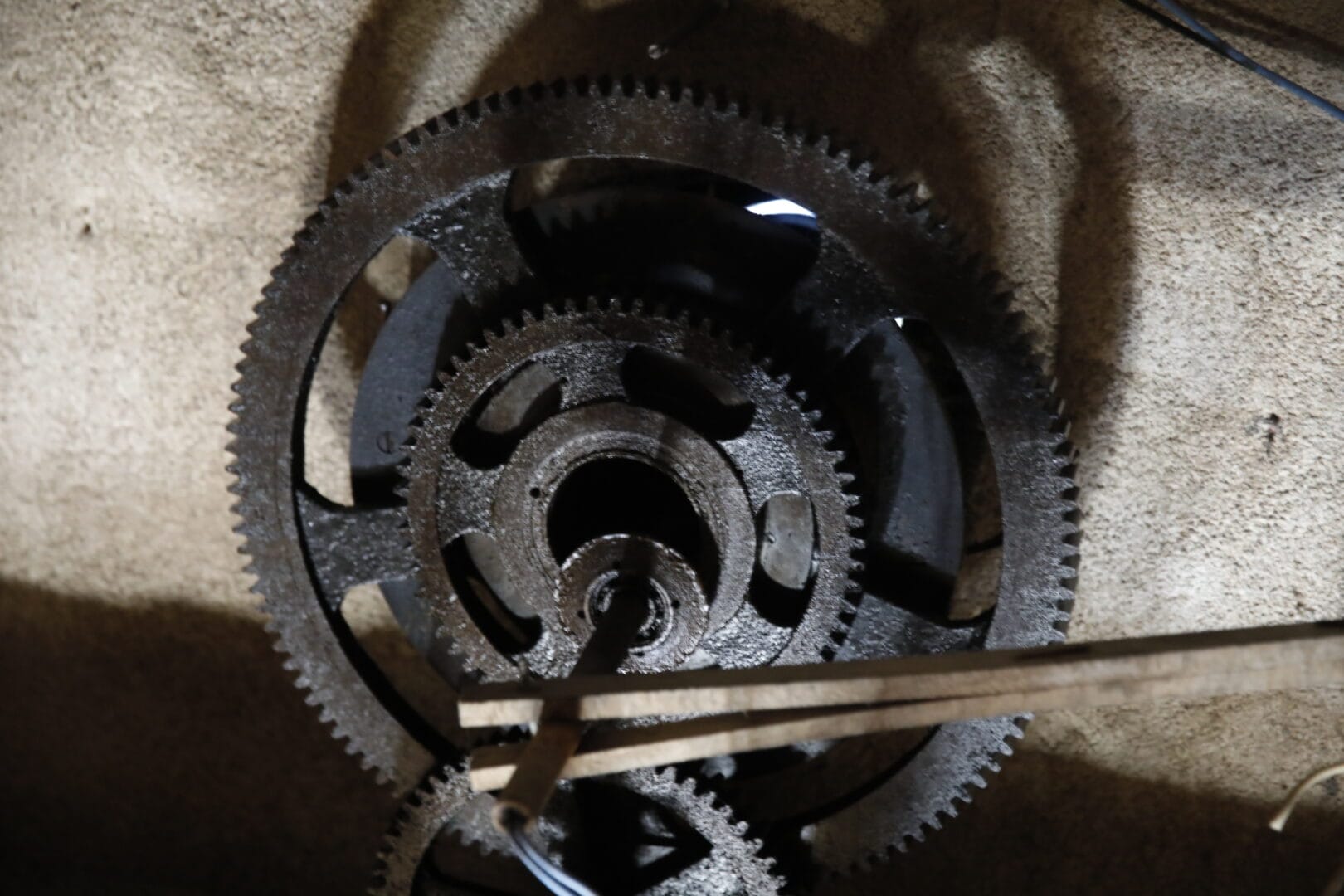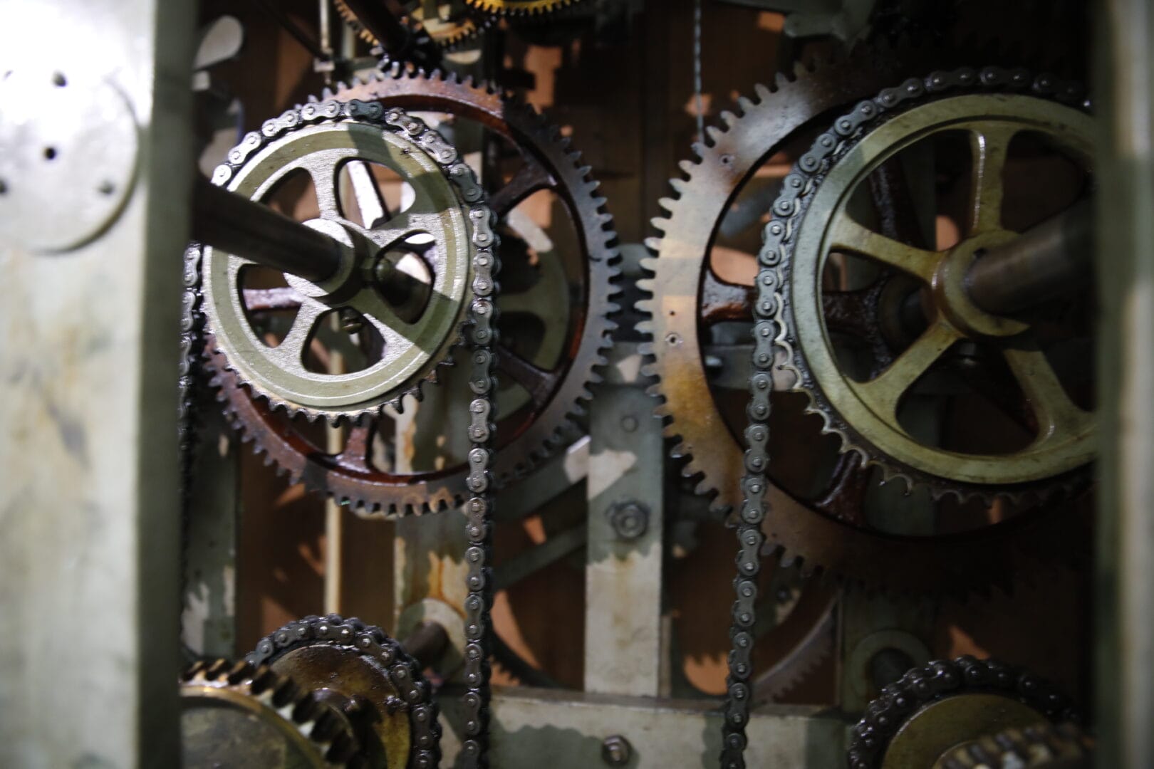 A máquina por trás disso pesa 400 quilos e tem o funcionamento um tanto rudimentar. O pêndulo gera energia para as engrenagens. A energia produzida é transmitida até os mostradores por meio de um eixo cardan, que possui um sistema diferencial de mecanismos que distribui o movimento.