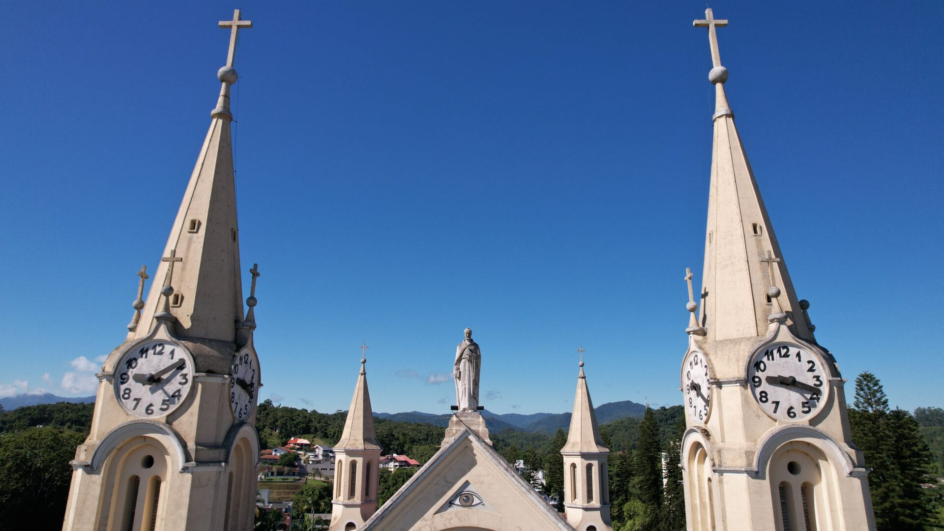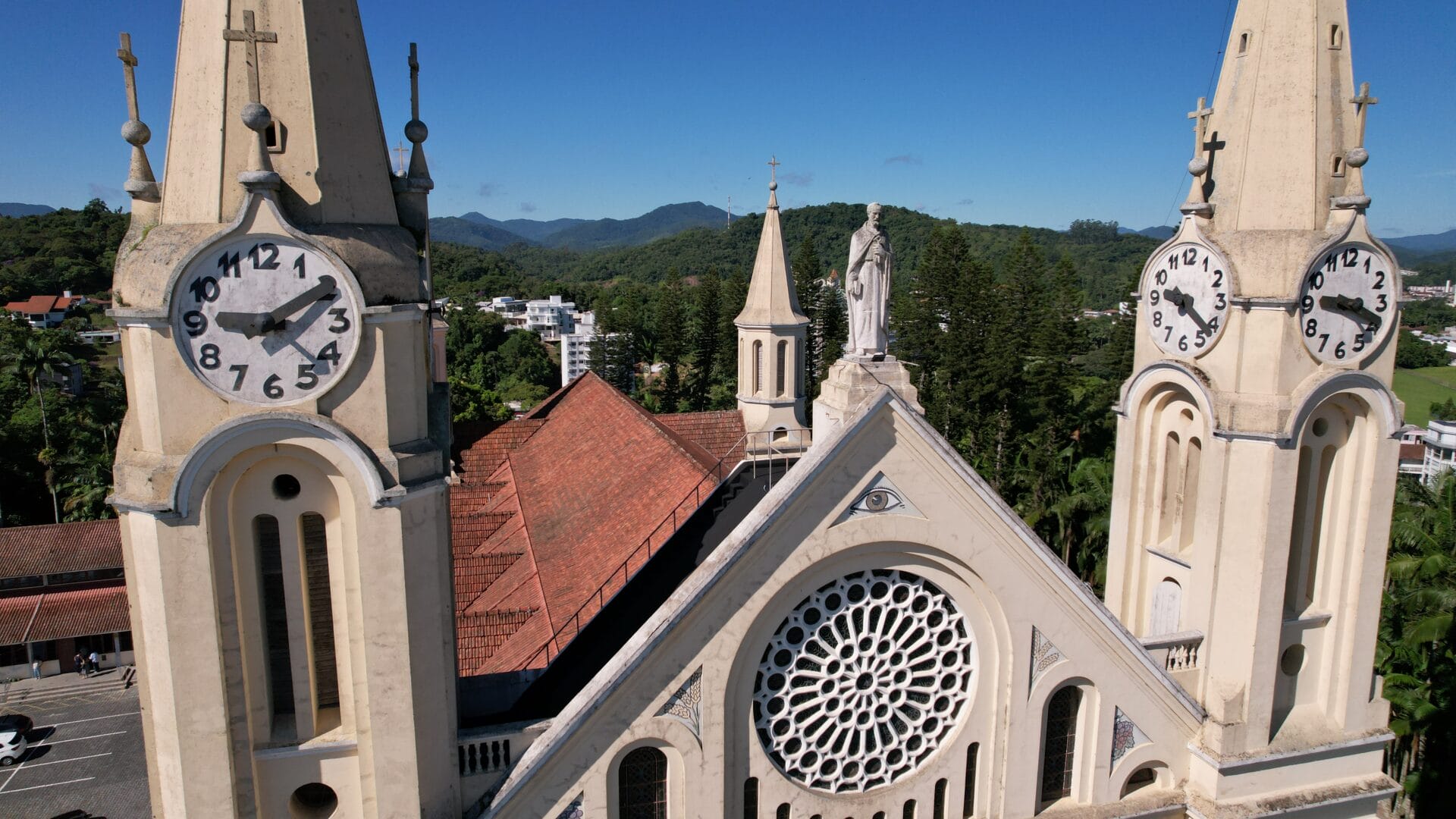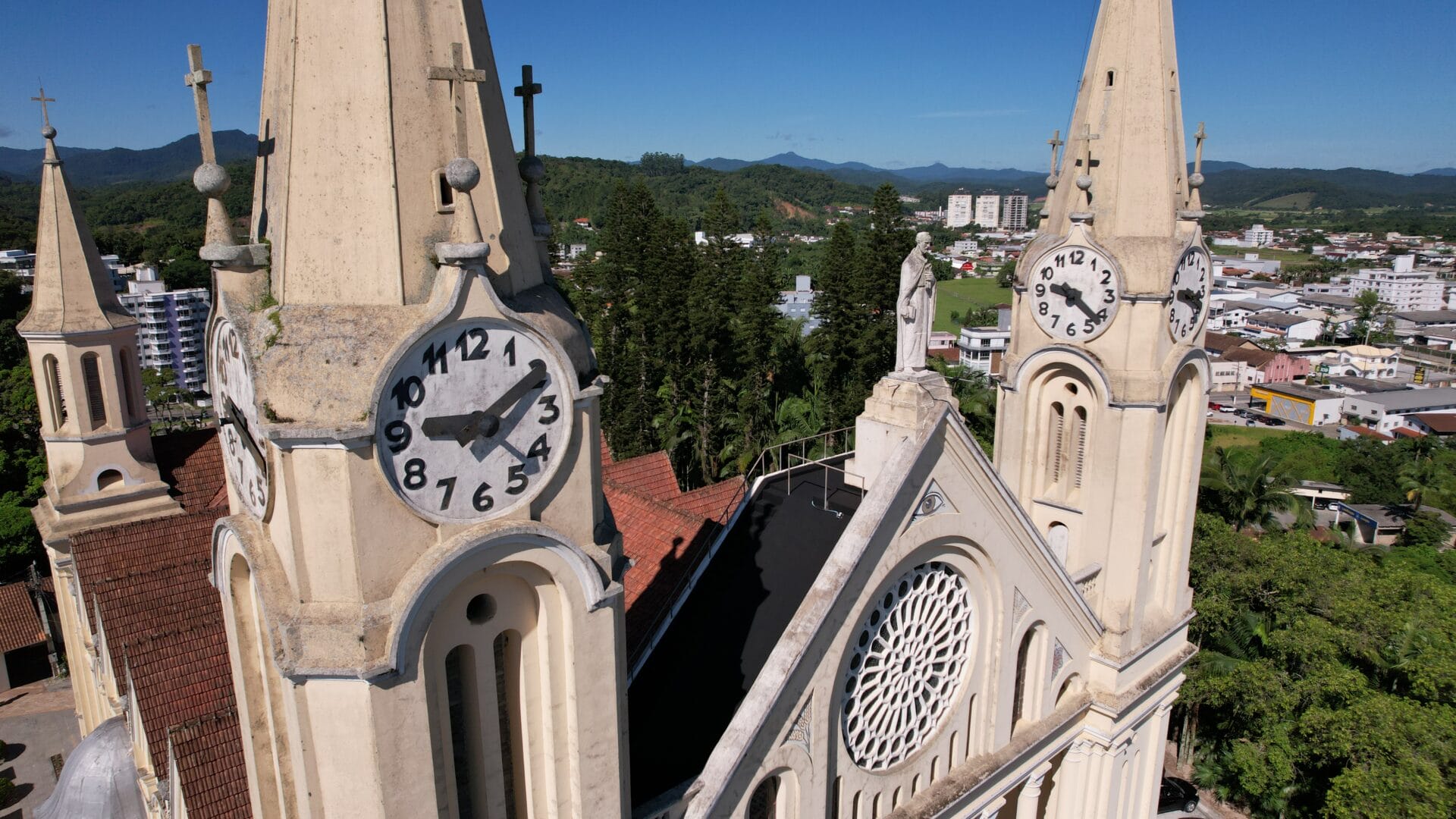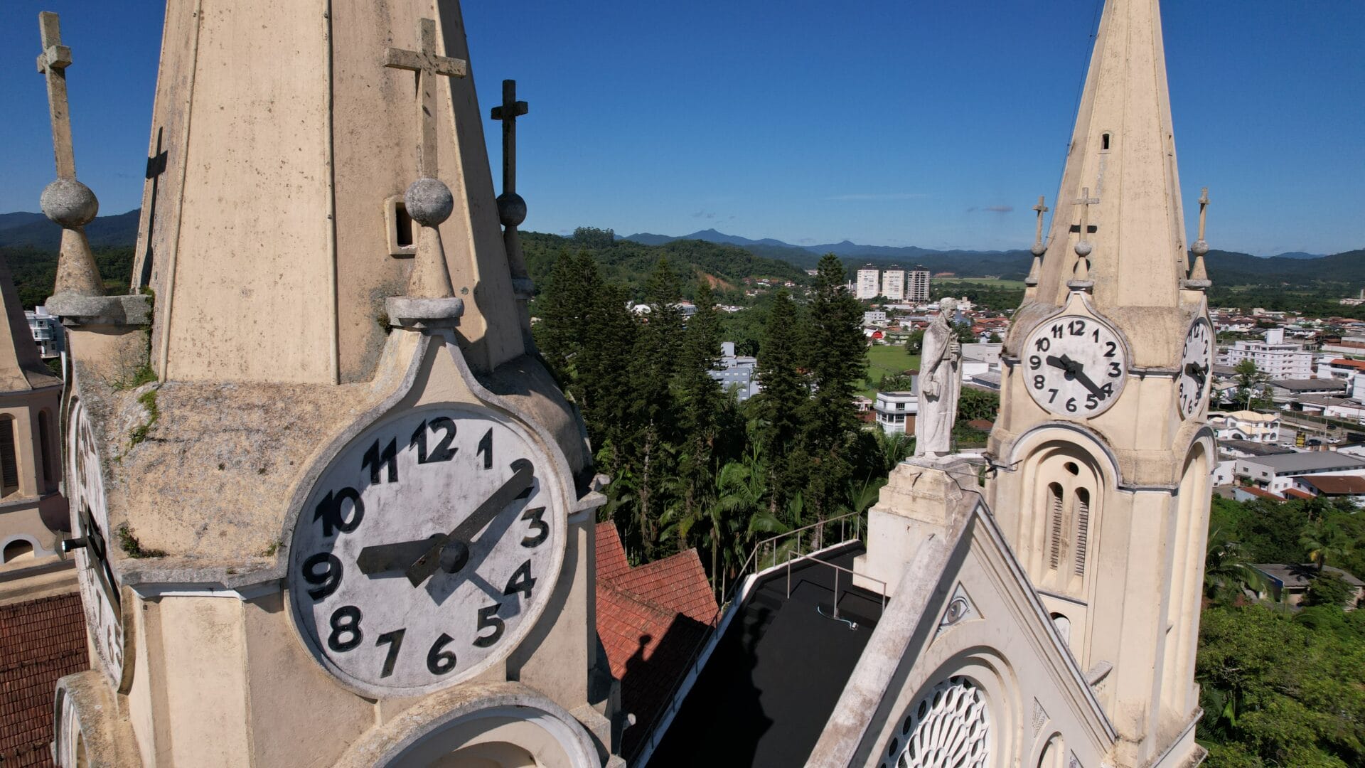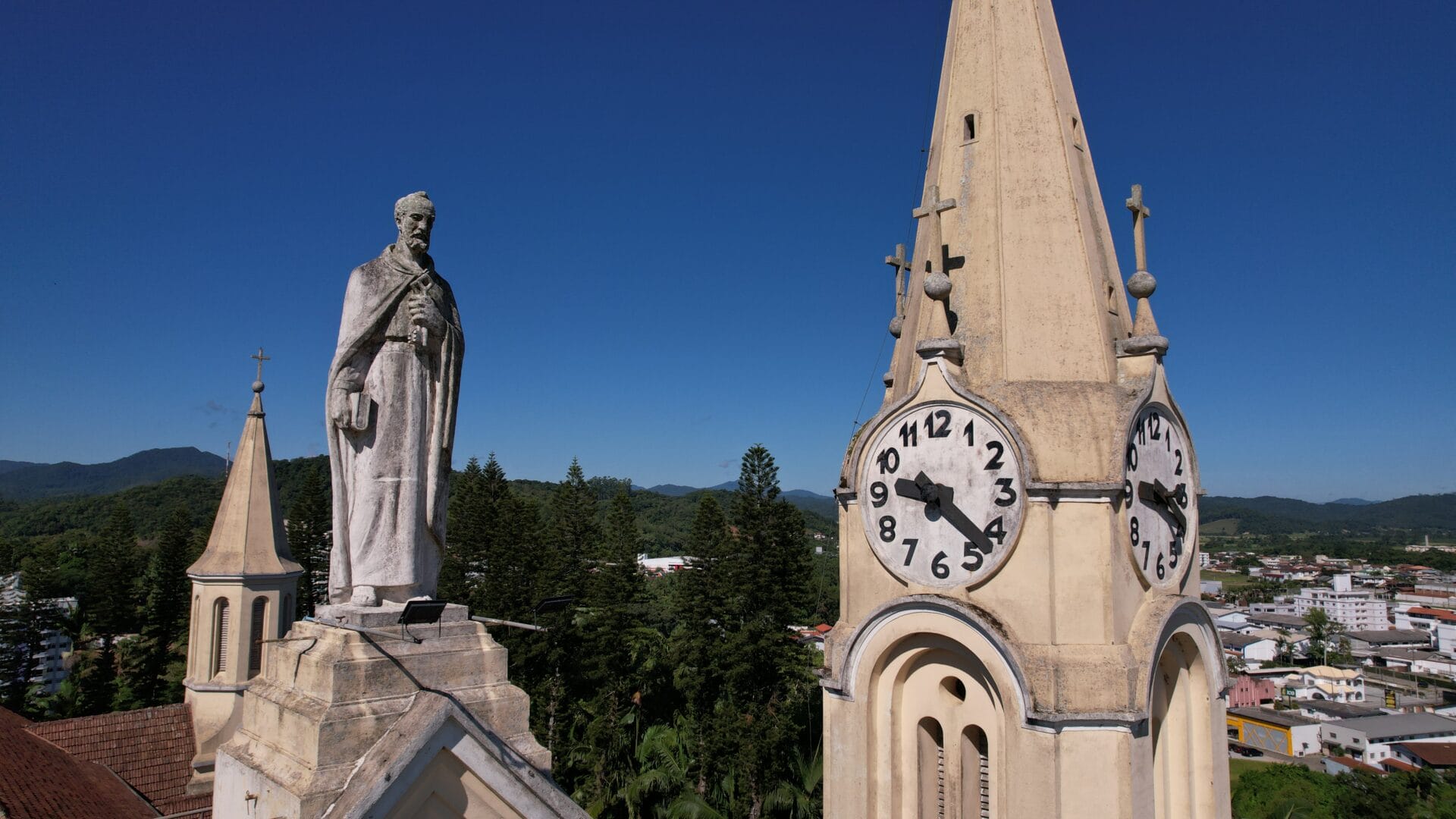 A Igreja Matriz São Pedro Apóstolo é o principal cartão-postal de Gaspar. A edificação majestosa no estilo gótico chama a atenção no Centro com seus oito relógios no alto das torres. Mas há um detalhe que poucos sabem: uma única máquina faz a engrenagem de todos os ponteiros rodar.