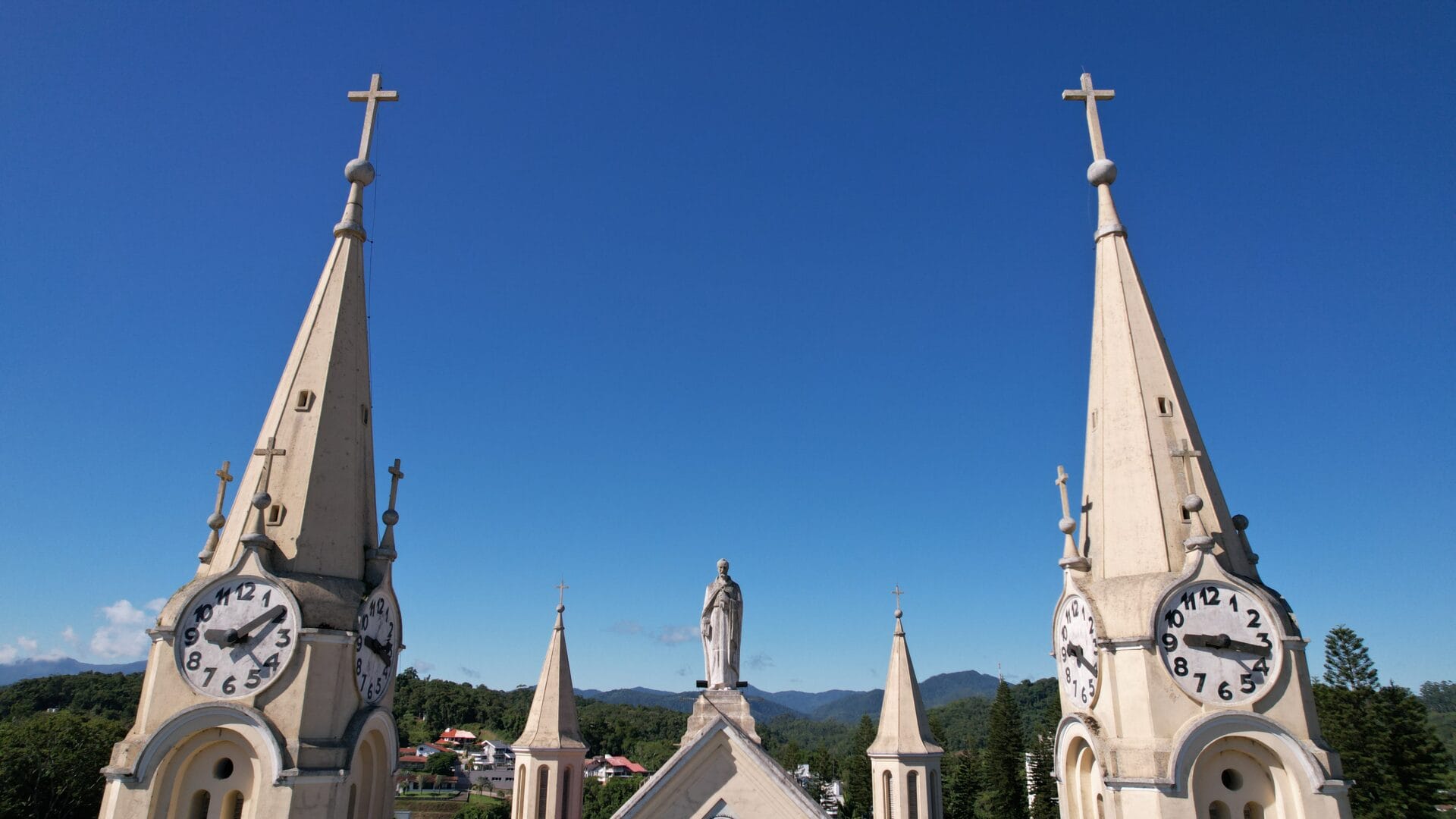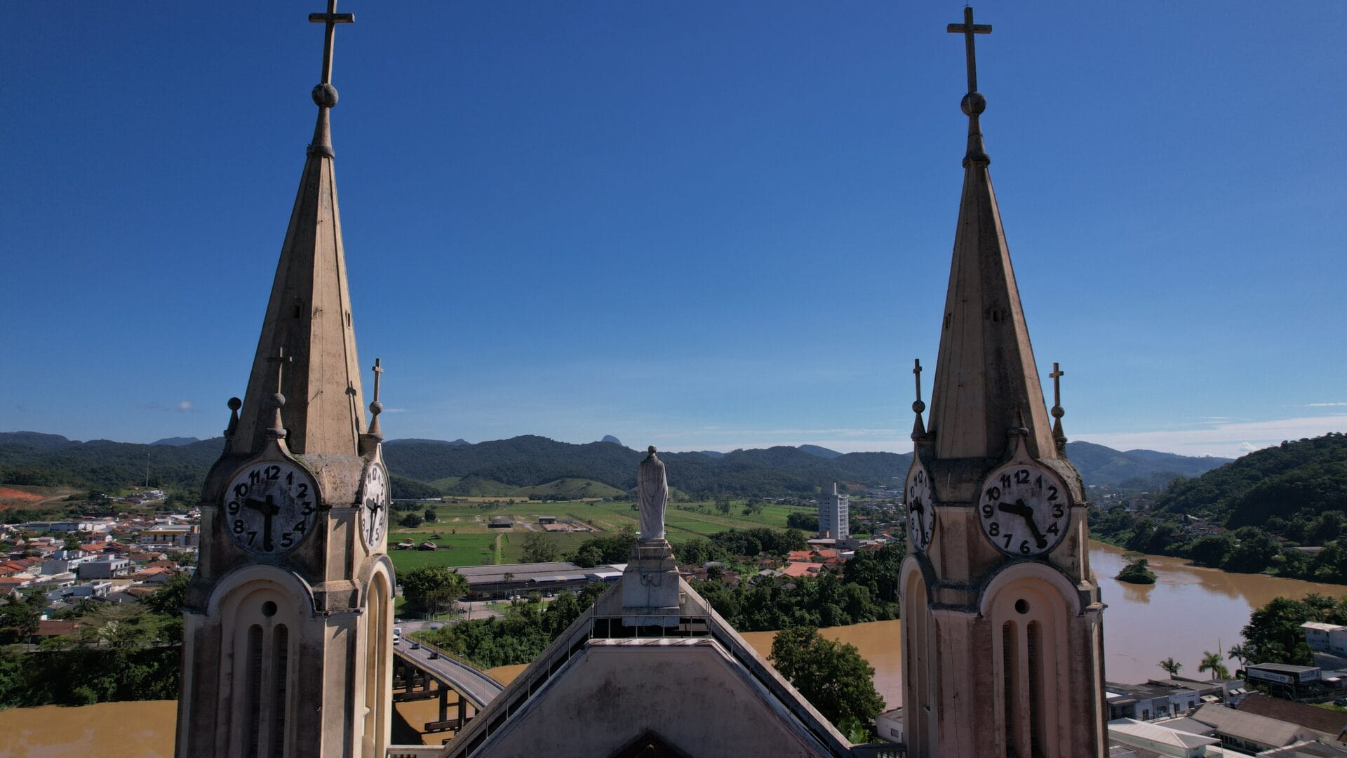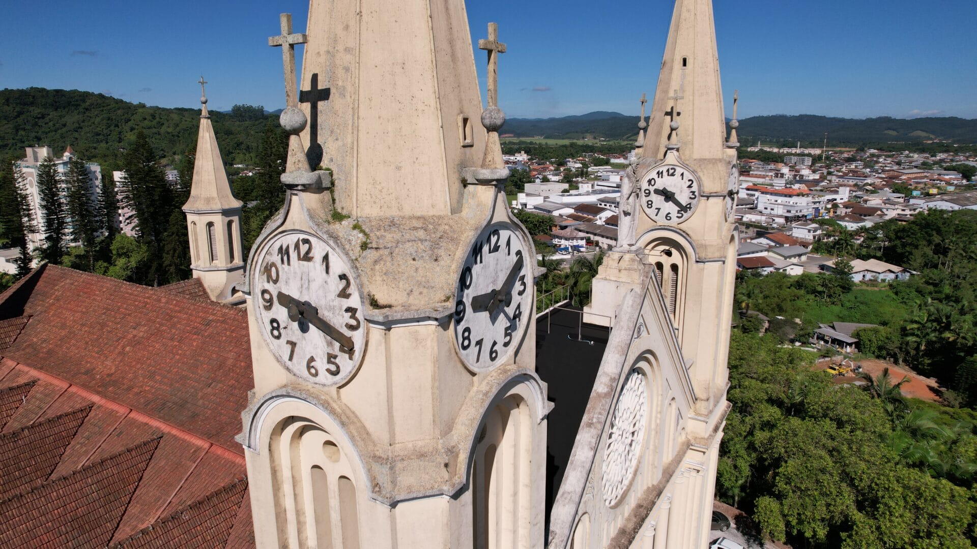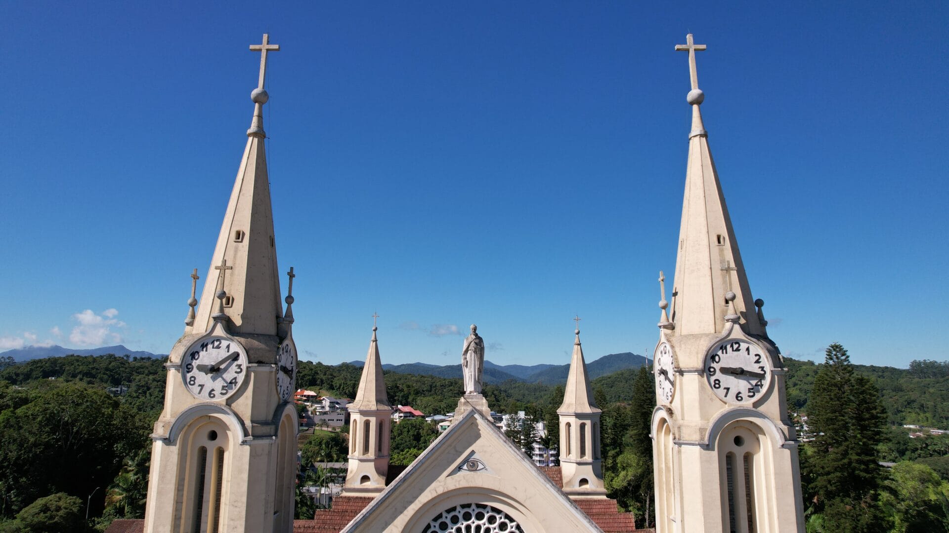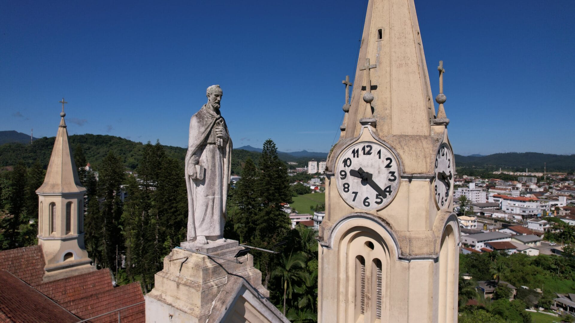 A Igreja Matriz São Pedro Apóstolo é o principal cartão-postal de Gaspar. A edificação majestosa no estilo gótico chama a atenção no Centro com seus oito relógios no alto das torres. Mas há um detalhe que poucos sabem: uma única máquina faz a engrenagem de todos os ponteiros rodar.
