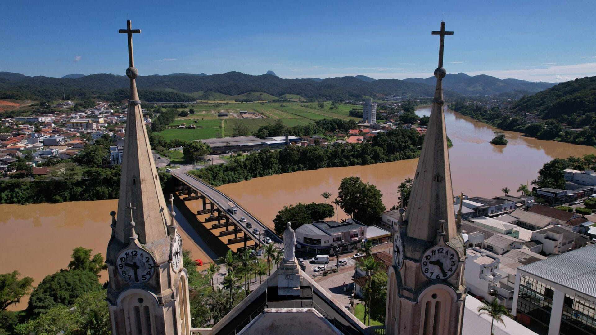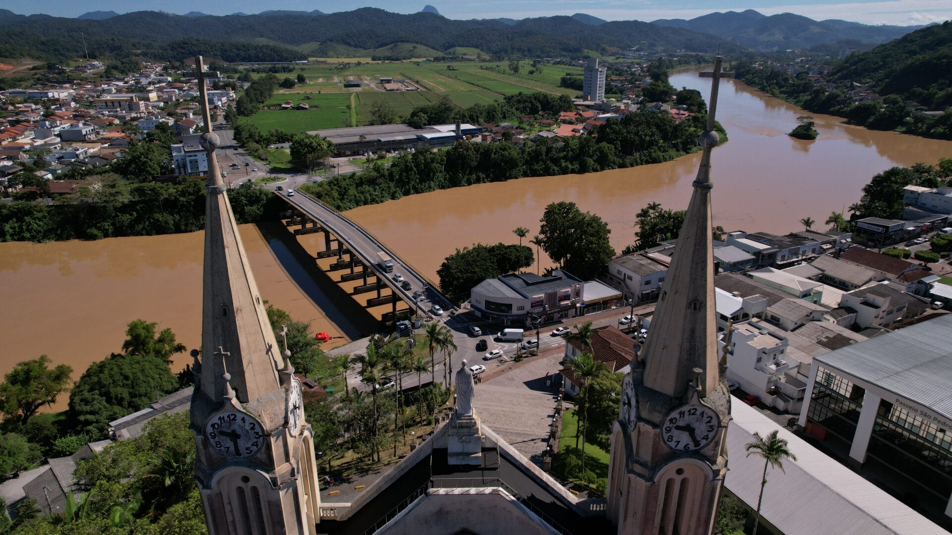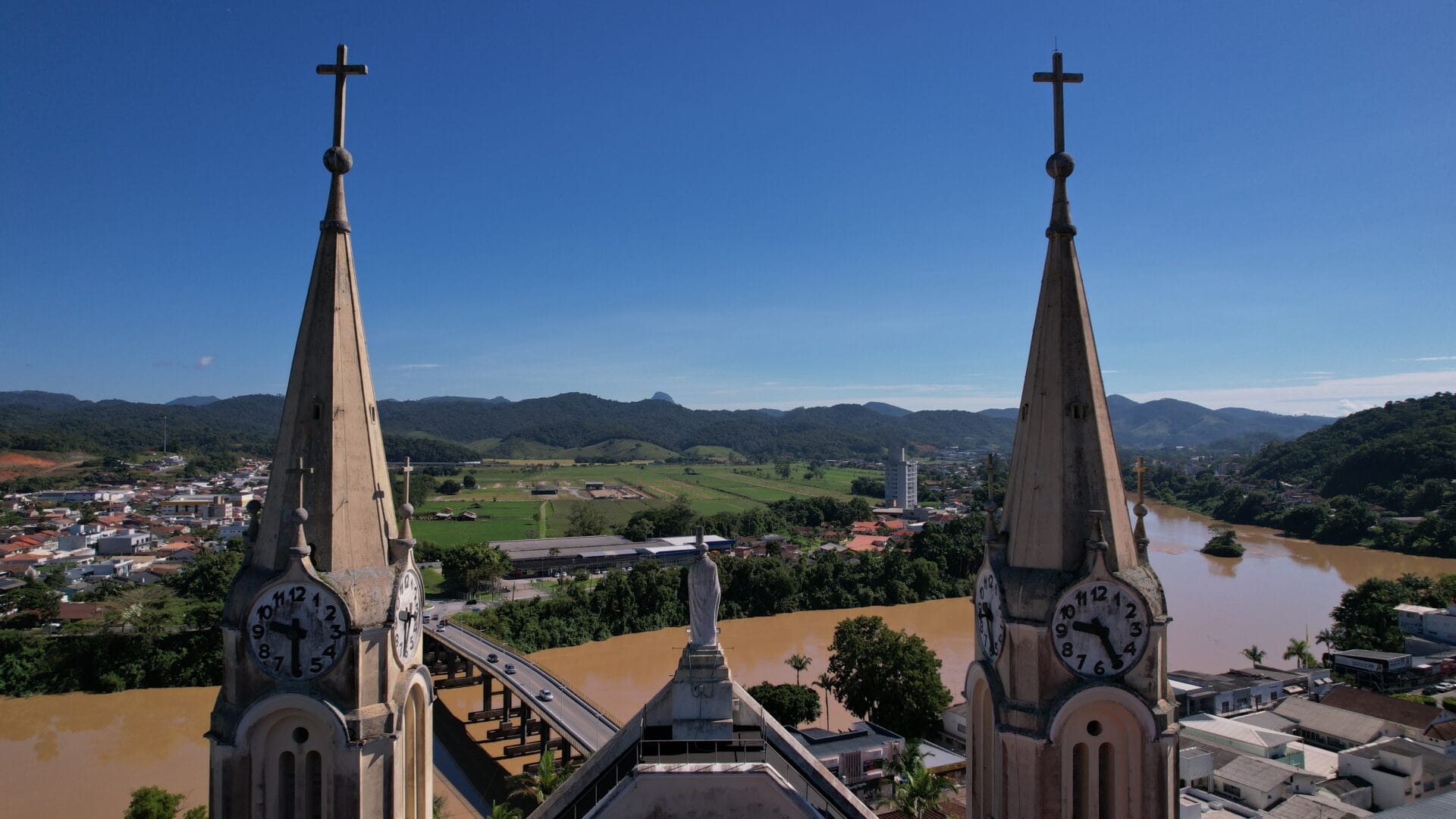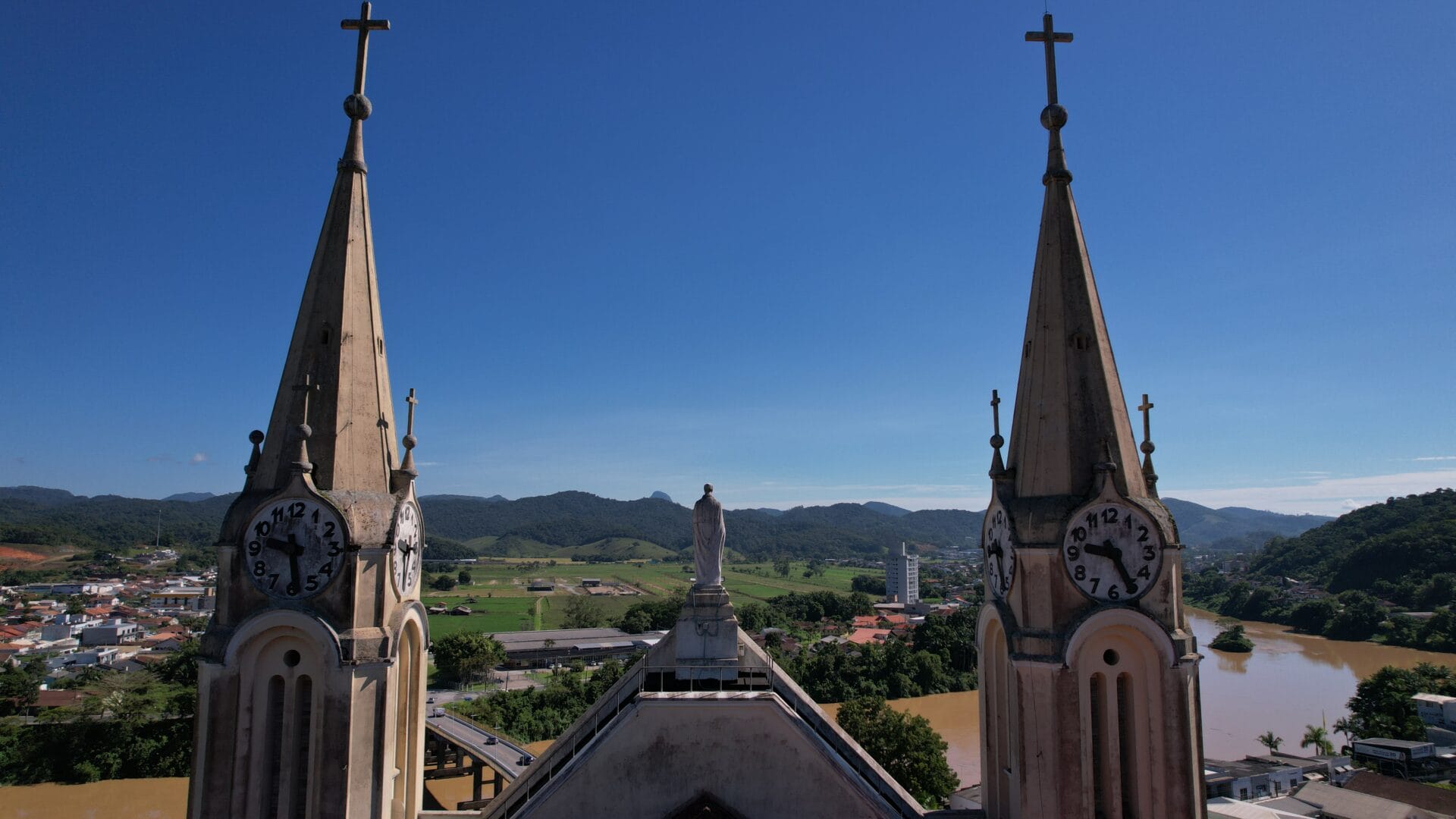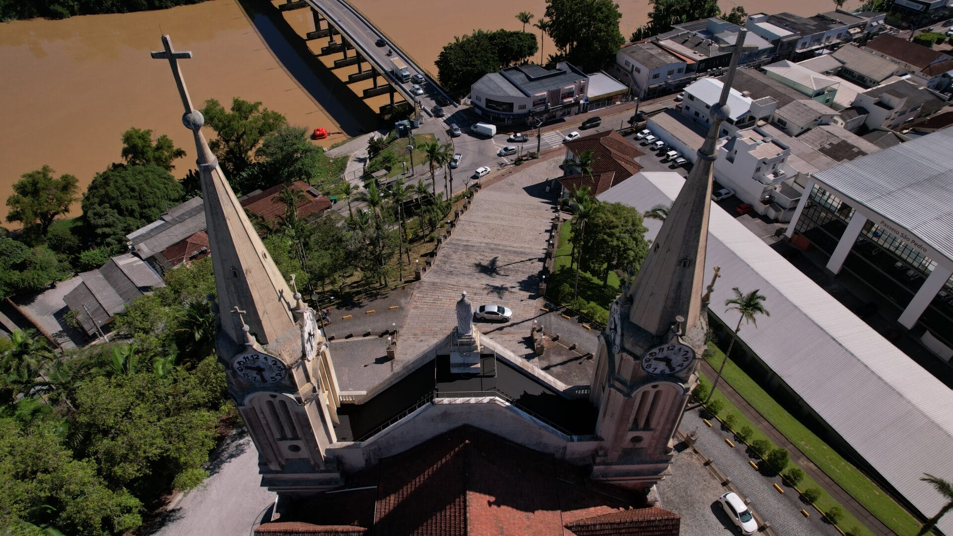 A Igreja Matriz São Pedro Apóstolo é o principal cartão-postal de Gaspar. A edificação majestosa no estilo gótico chama a atenção no Centro com seus oito relógios no alto das torres. Mas há um detalhe que poucos sabem: uma única máquina faz a engrenagem de todos os ponteiros rodar.