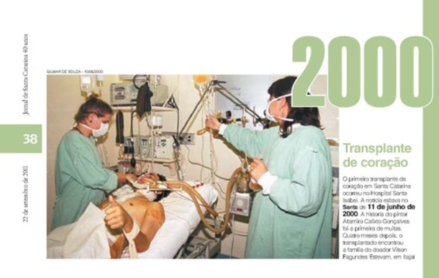 Uma foto histórica ganhou as redes sociais nesta semana. A imagem mostra o primeiro paciente a ser transplantado do coração em Santa Catarina. A cirurgia ocorreu no dia 9 de junho de 2000, no Hospital Santa Isabel, em Blumenau, e foi um marco para o Estado.