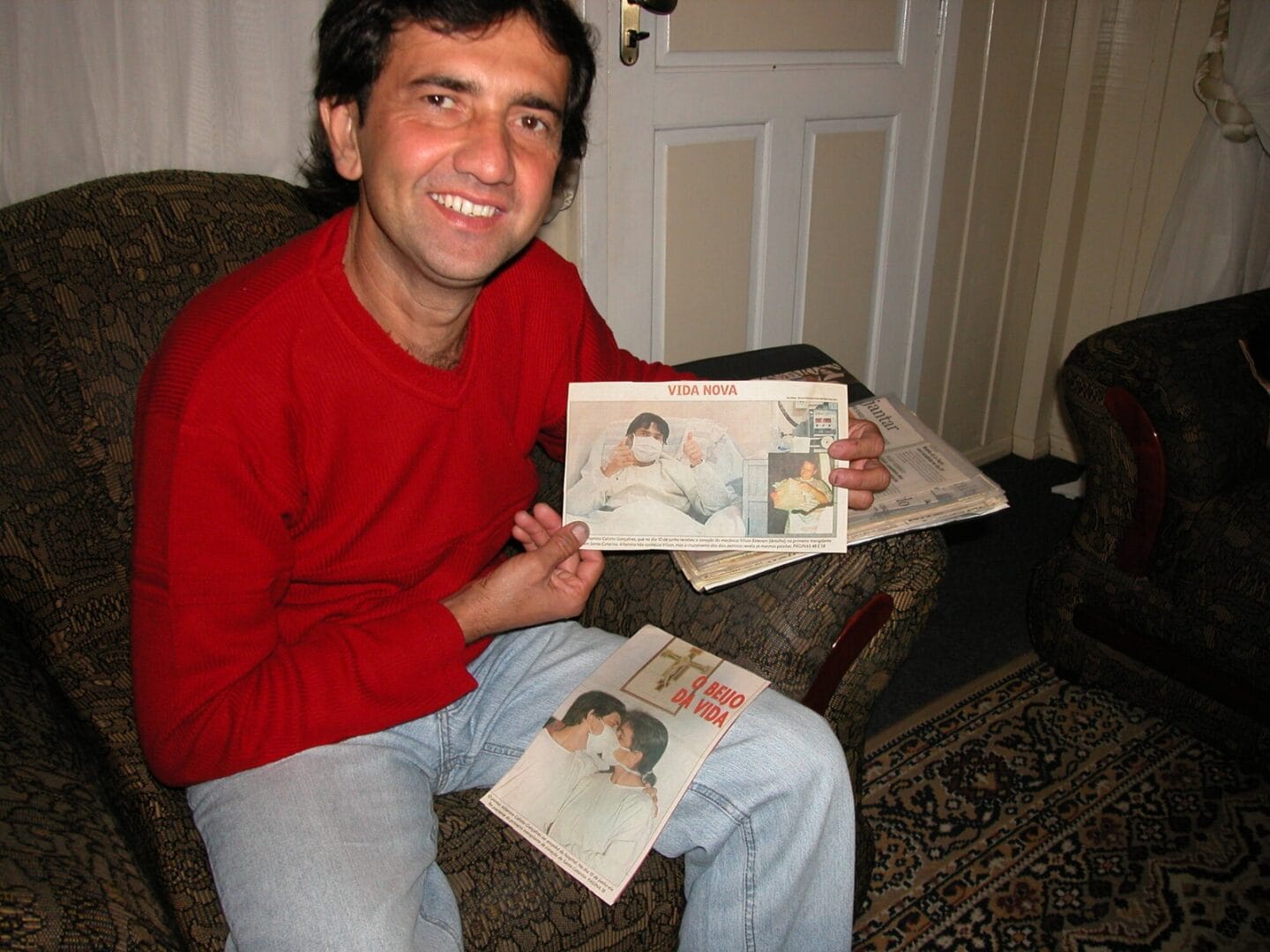 Calixto, com 33 anos, já tinha enfrentado três cirurgias cardíacas e chegou o momento em que só um transplante poderia garantir a vida dele. A foto emblemática foi tirada um dia após a cirurgia, considerada um sucesso, recorda o cardiologista.