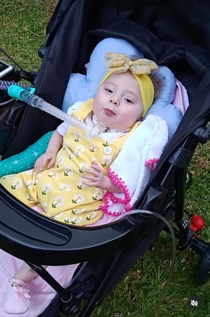 Agora em casa, ela recebe o carinho da família enquanto continua o tratamento. No quarto, a decoração com leõezinhos divide espaço com respirador e outros equipamentos necessários para o cuidado diário. O tratamento é acompanhado por uma equipe multidisciplinar do Sistema Único de Saúde (SUS), com profissionais como fisioterapeuta, médico, enfermeira e técnico de enfermagem.