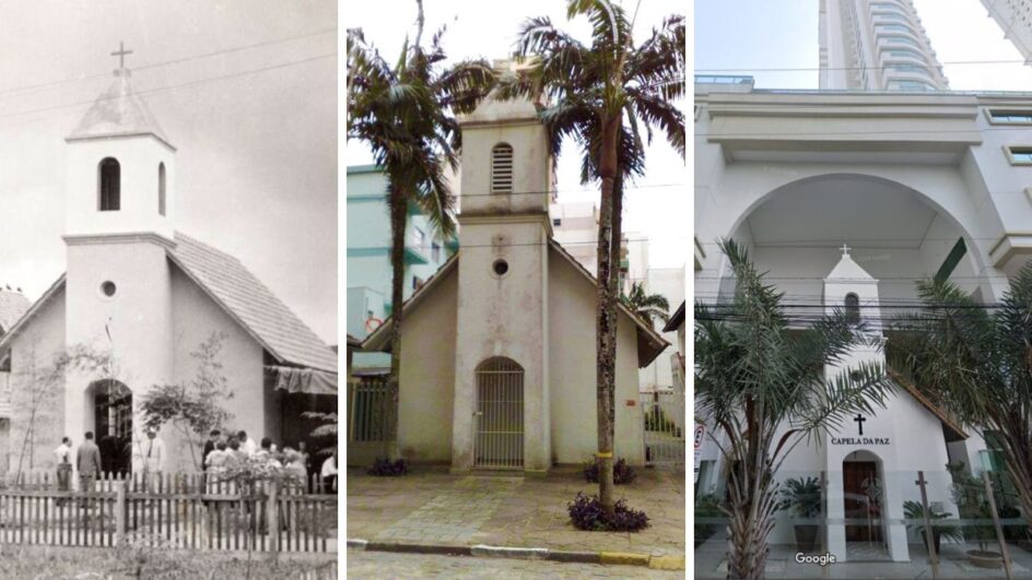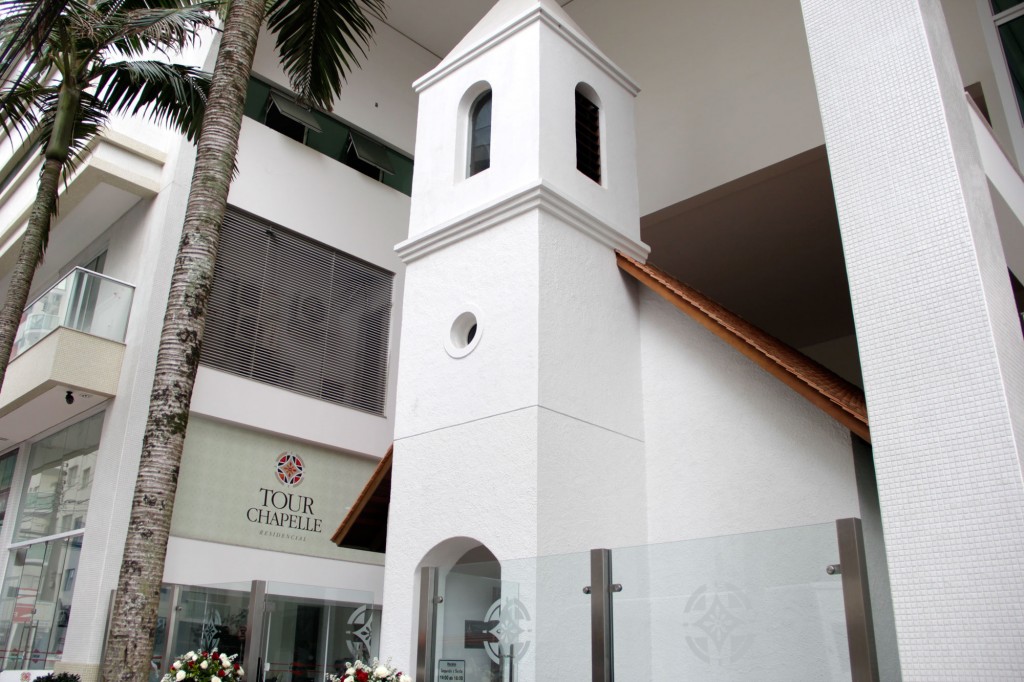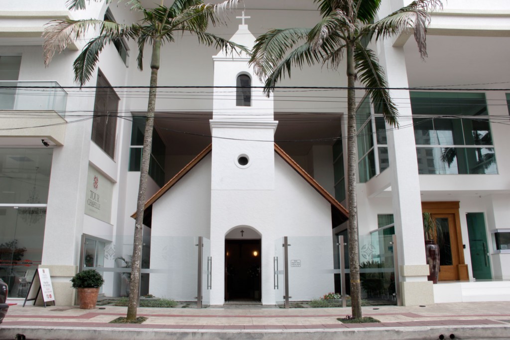 Uma igrejinha no coração de Balneário Camboriú sobrevive ao avanço dos prédios. Na cidade dos arranha-céus, é bem verdade que foi preciso uma manobra para manter a pequena estrutura de pé. Um residencial se ergueu literalmente em volta da Capela da Paz, como mostram as imagens abaixo. Quem passa sem prestar muita atenção pela Rua 2300 quase nem percebe ali um espaço de fé.