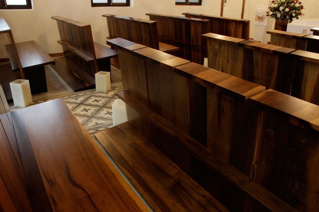 A capela tem 8,8 metros de comprimento e 6 de largura. O espaço guarda uma obra sacra valiosa, ainda da época que pertencia à igreja luterana. É uma cruz com Cristo, talhada em madeira nobre, pelo renomado escultor Alvino Ziebarth, nascido em São Bento do Sul. A igrejinha abre as portas para visitantes de segunda a sexta-feira, das 13h30min às 18h, conforme placa indicativa no local.