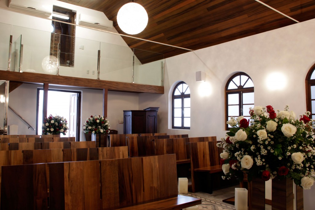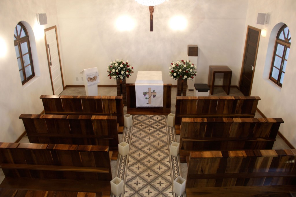 Na restauração, em 2012, o espaço interno da capela foi completamente modificado. Apenas os aspectos externos foram mantidos como a obra original. Tanto que a igrejinha ganhou uma característica da comunidade católica: o sacrário no canto direito do altar. Agora, o espaço pertence ao condomínio, mas é alugado para eventos e semanalmente recebe uma missa.